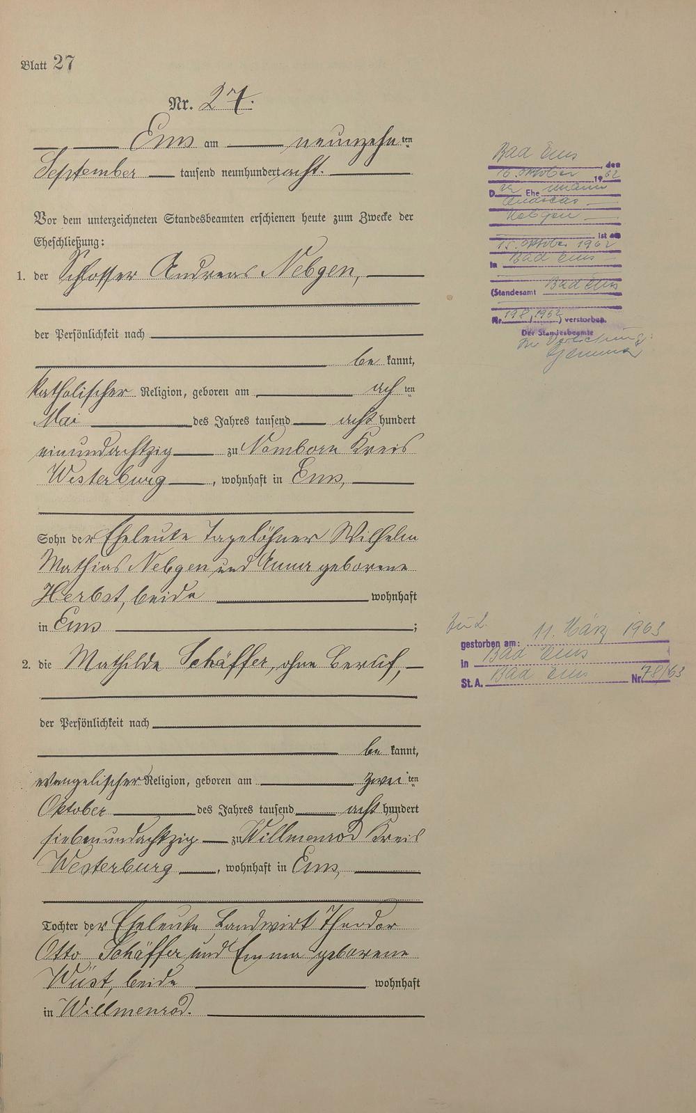 Heiratsregister 1908