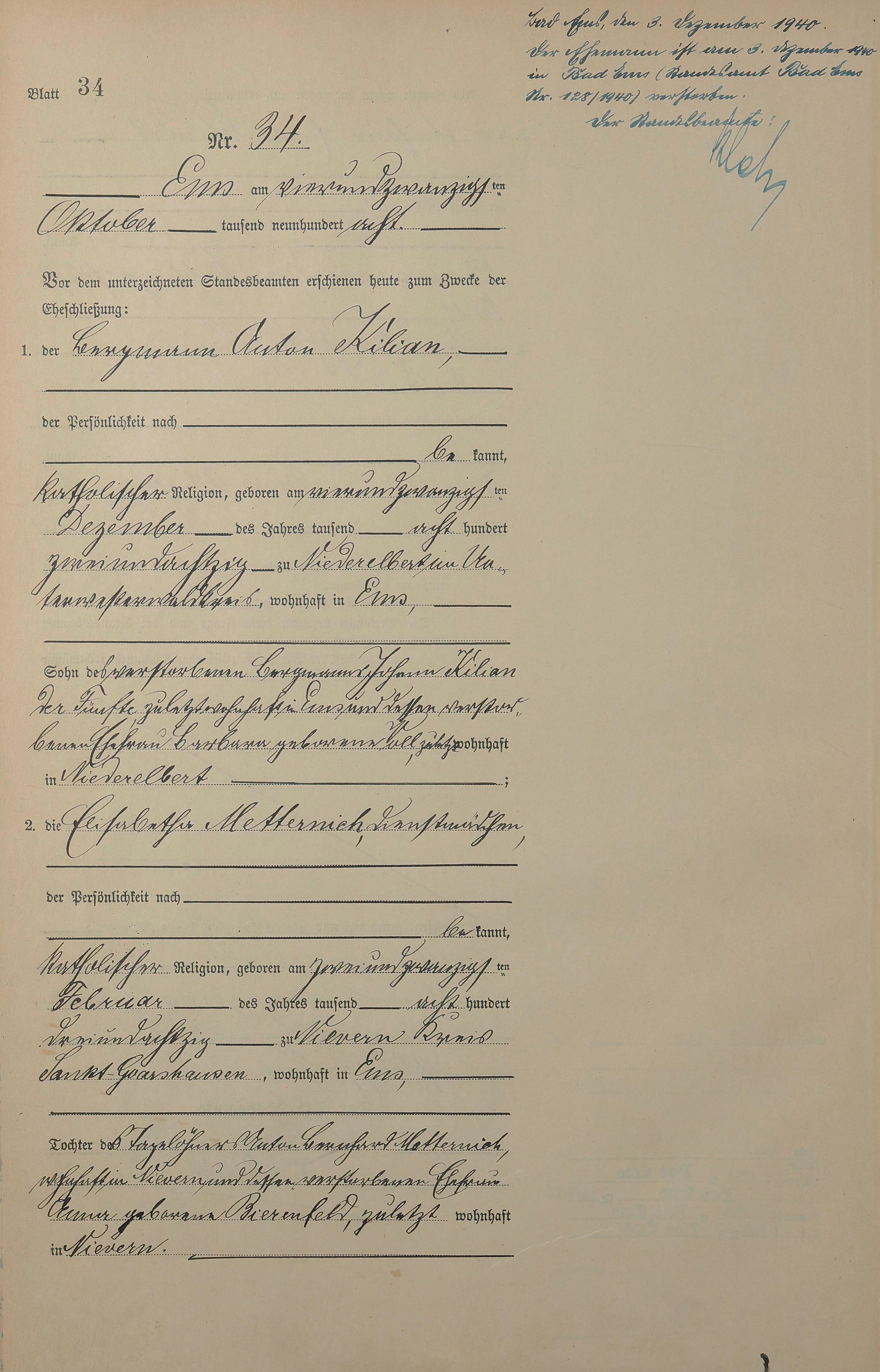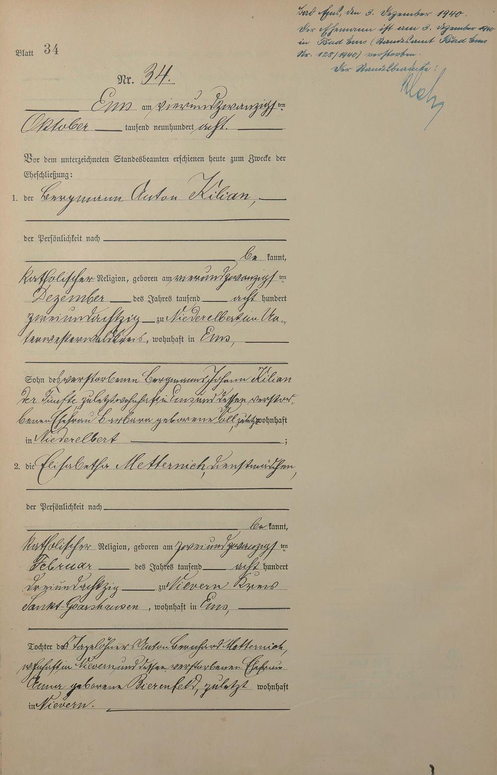 1384: Heiratsregister 1908