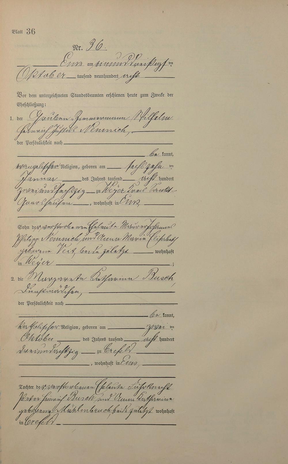 1384: Heiratsregister 1908
