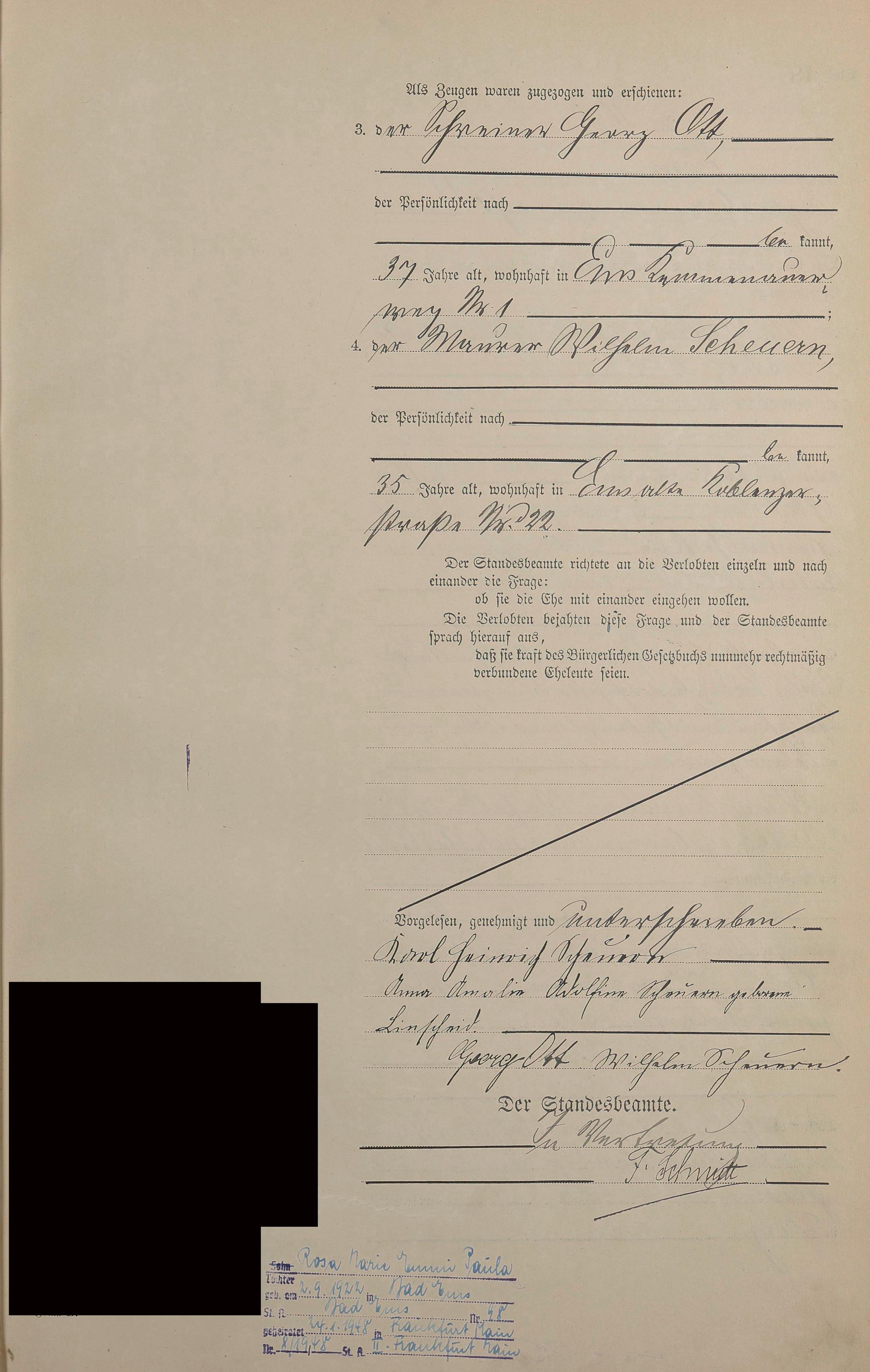 Heiratsregister 1908