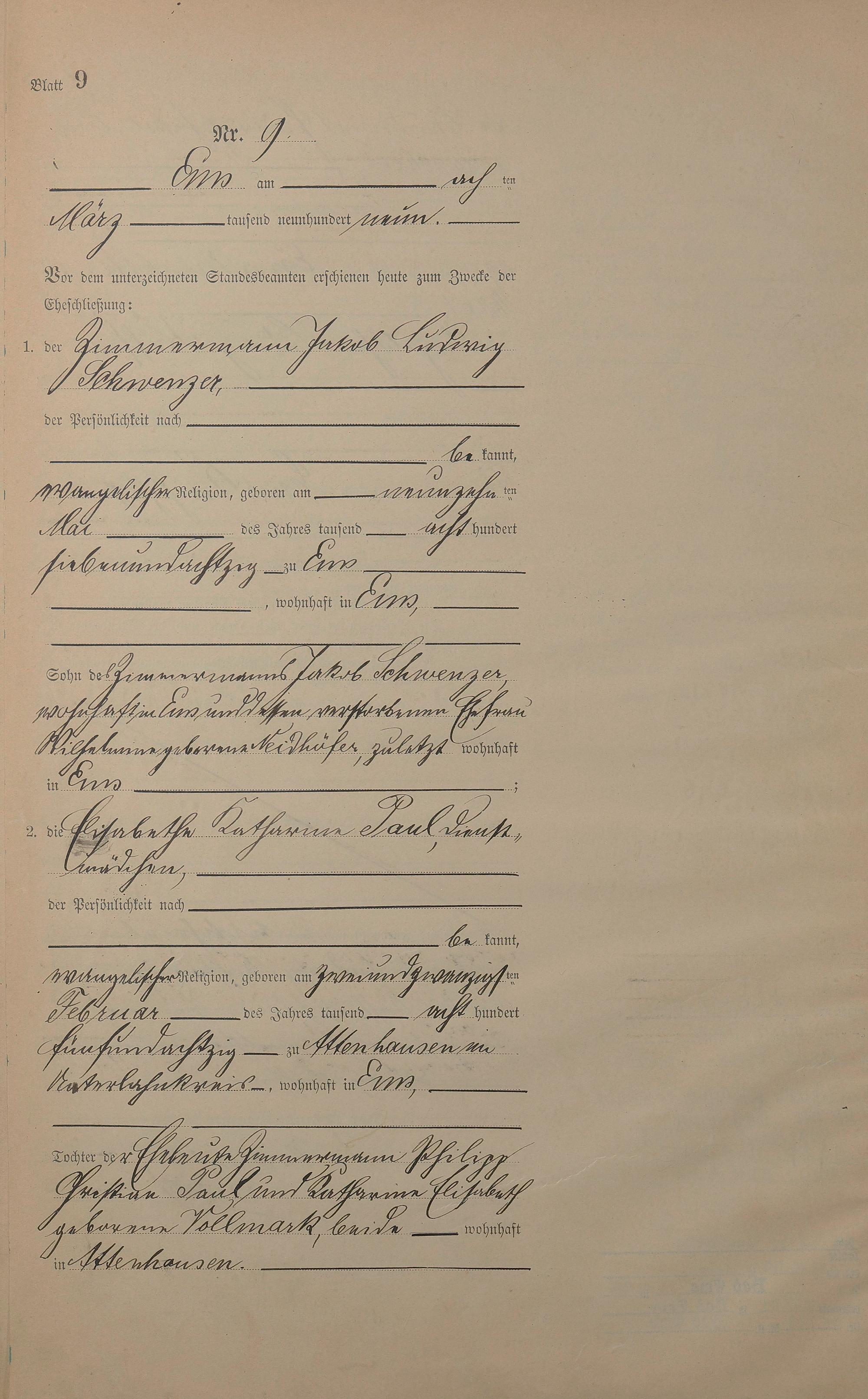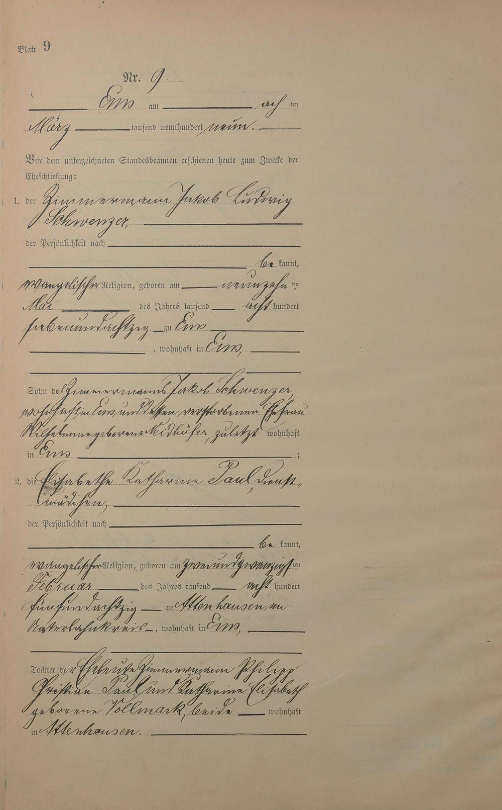1385: Heiratsregister 1909