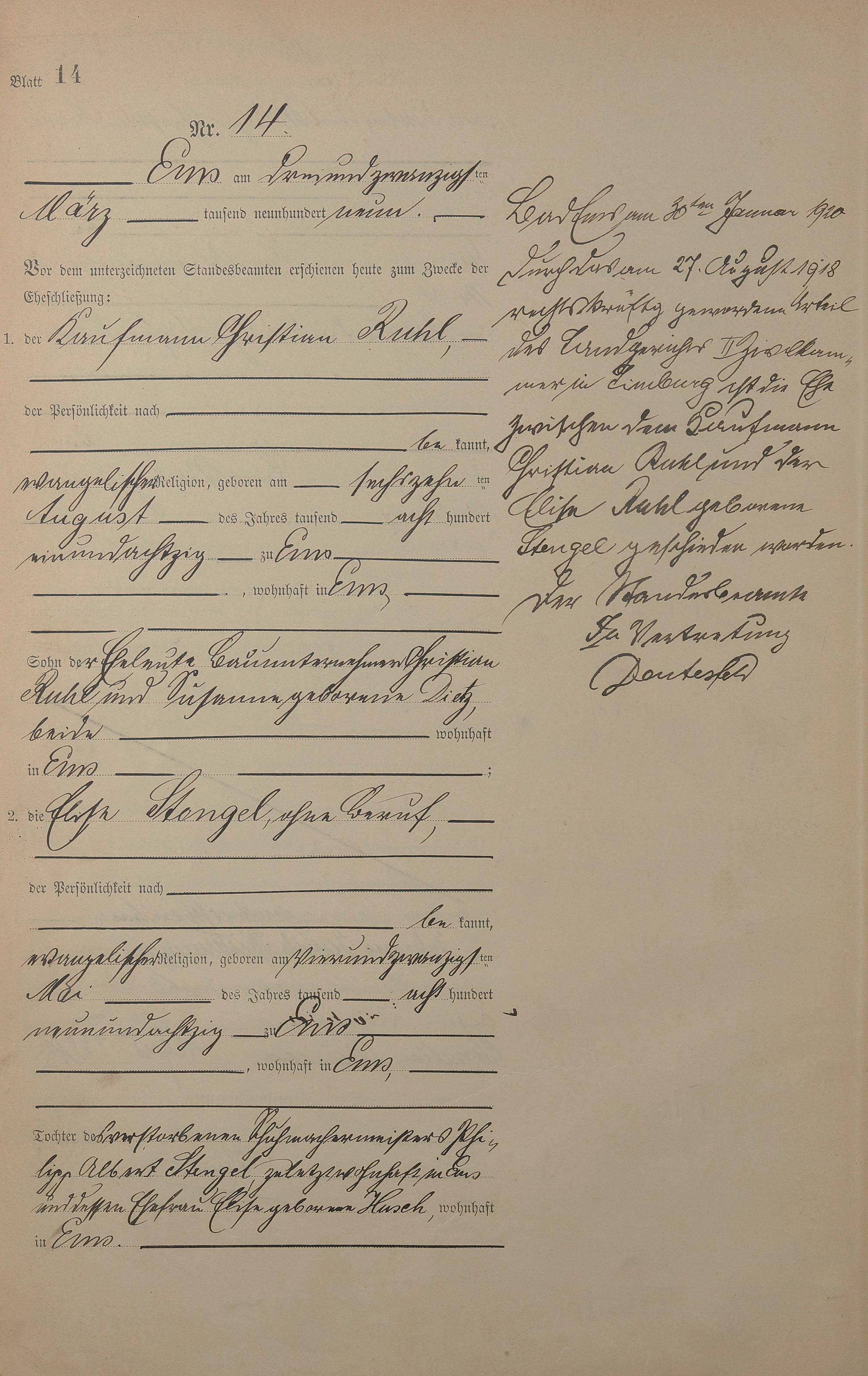1385: Heiratsregister 1909