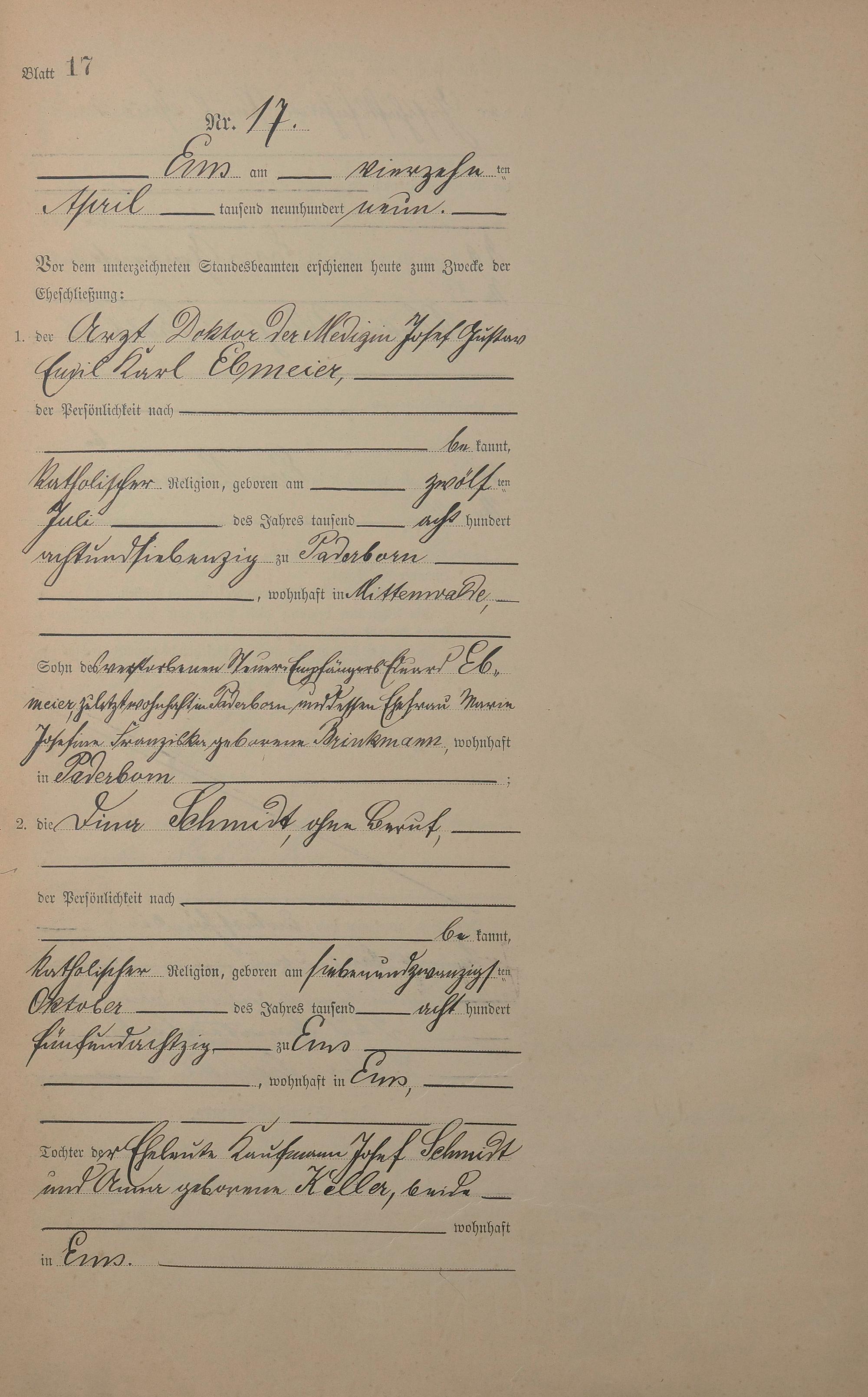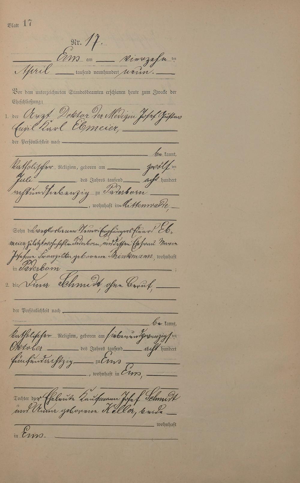 1385: Heiratsregister 1909