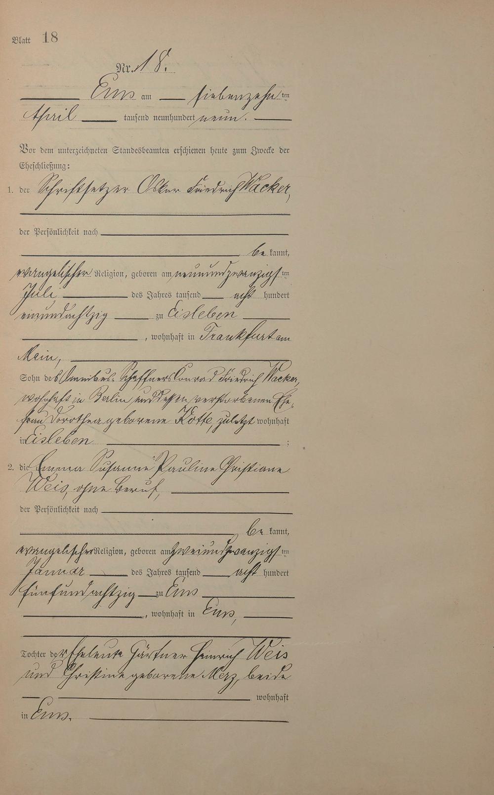 1385: Heiratsregister 1909