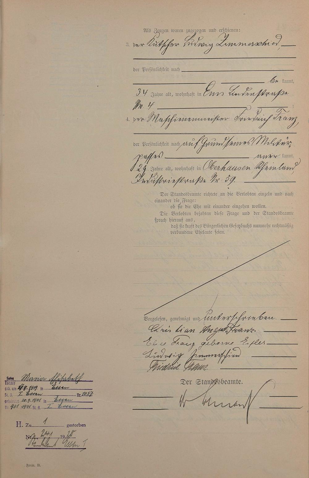 1385: Heiratsregister 1909