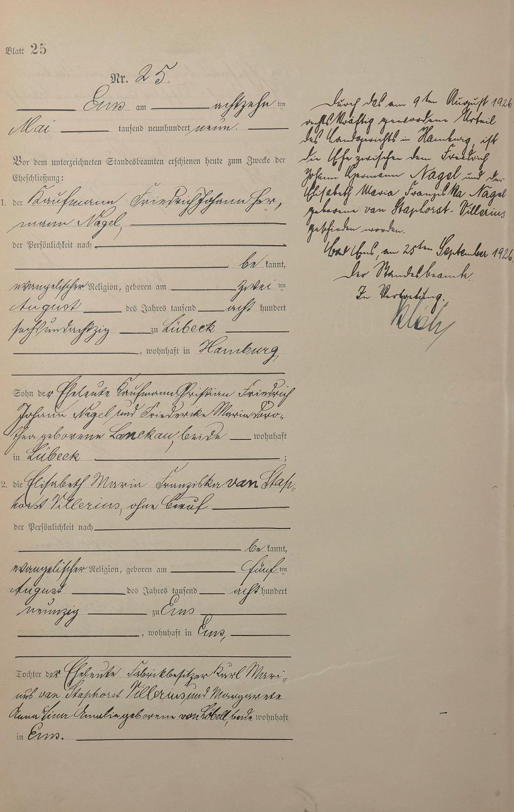 1385: Heiratsregister 1909
