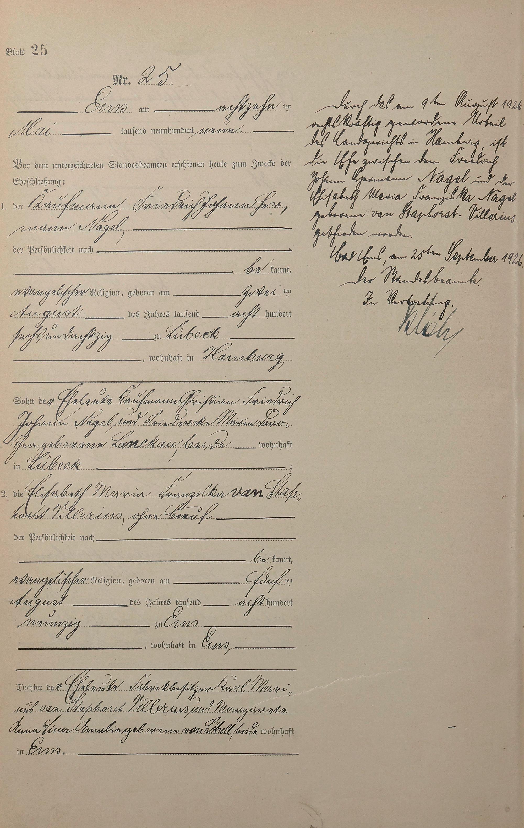 Heiratsregister 1909
