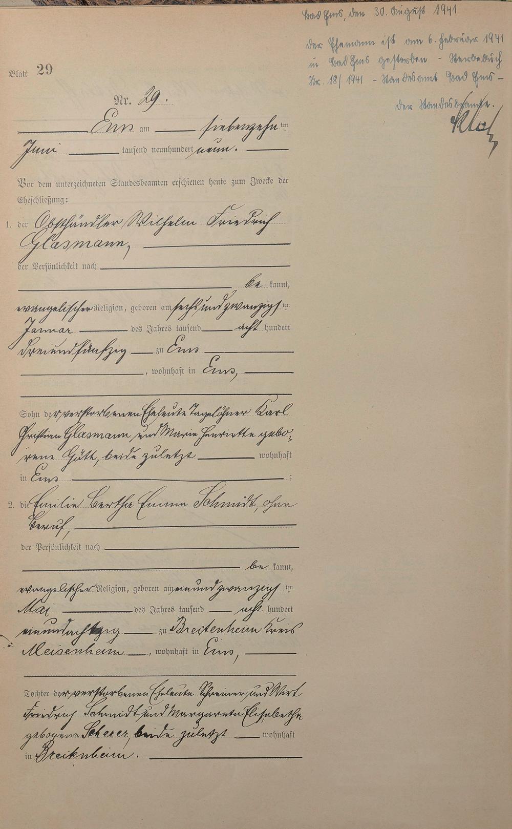Heiratsregister 1909