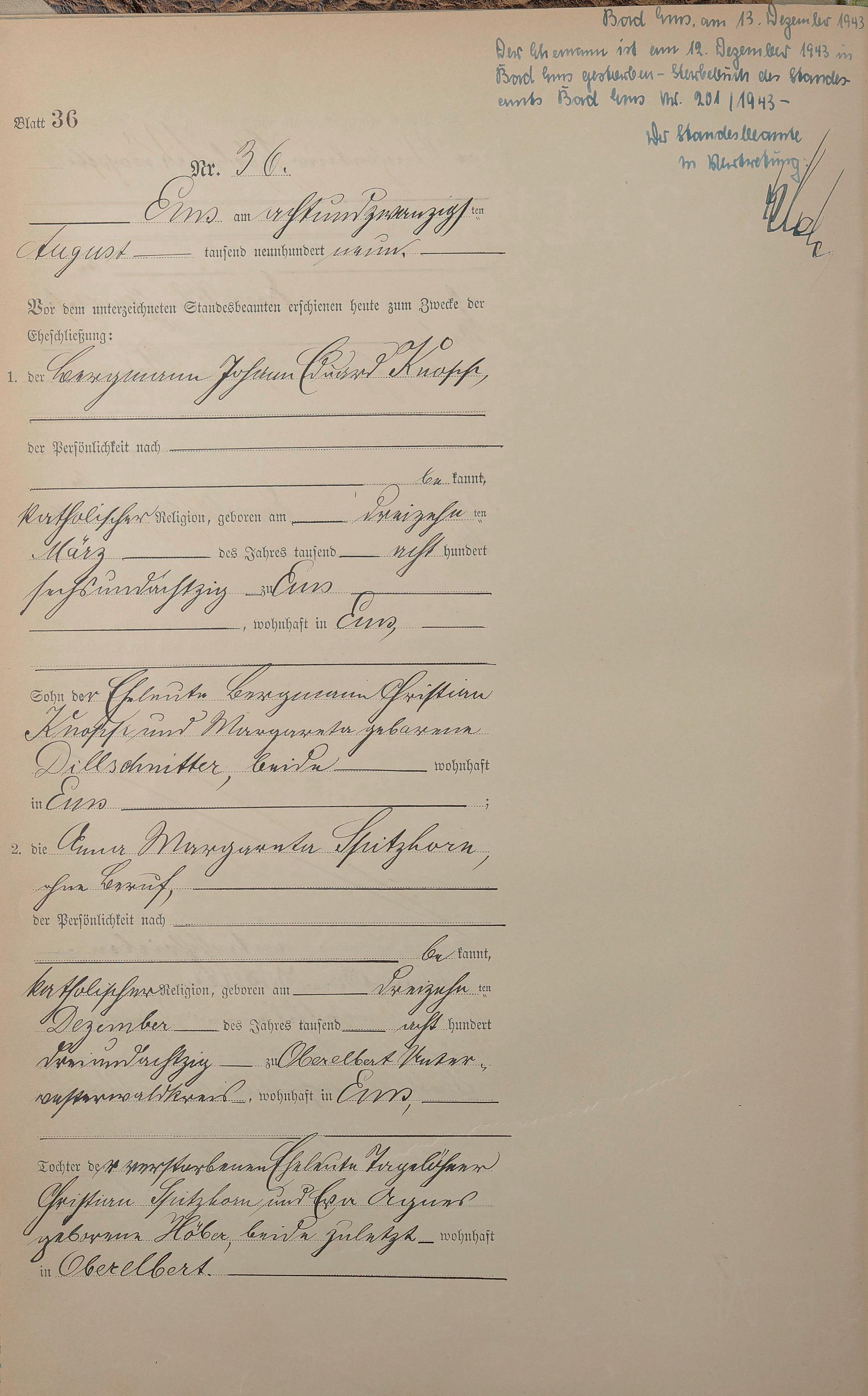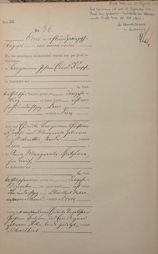 1385: Heiratsregister 1909