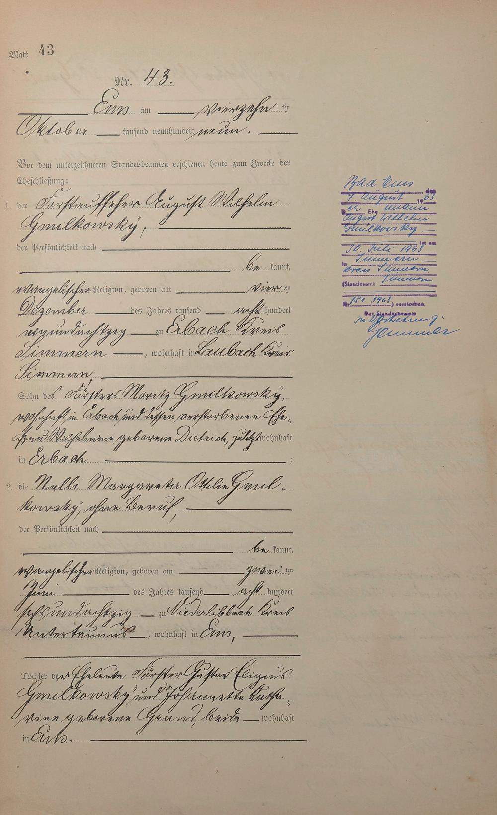 1385: Heiratsregister 1909