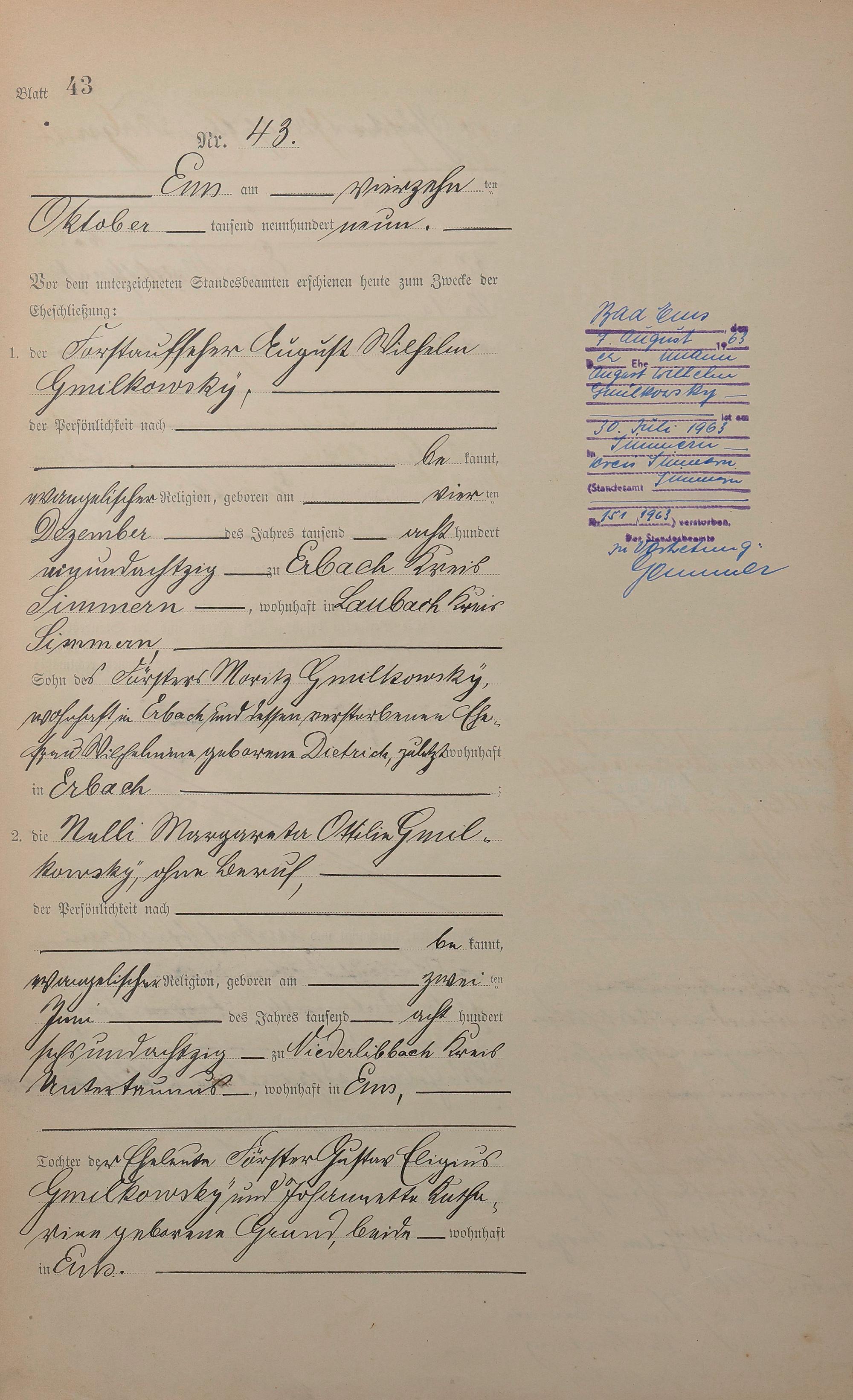Heiratsregister 1909