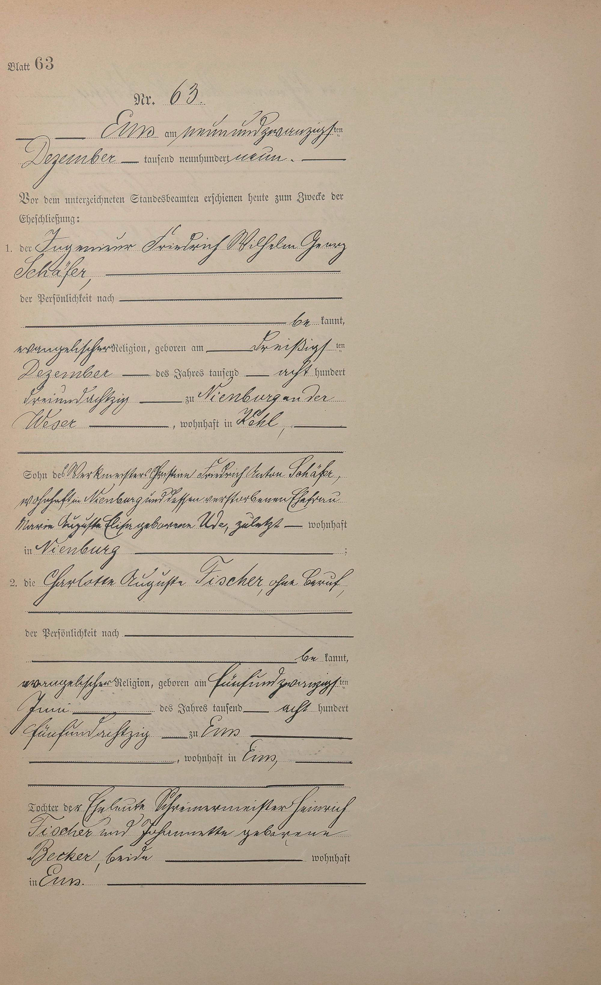 1385: Heiratsregister 1909