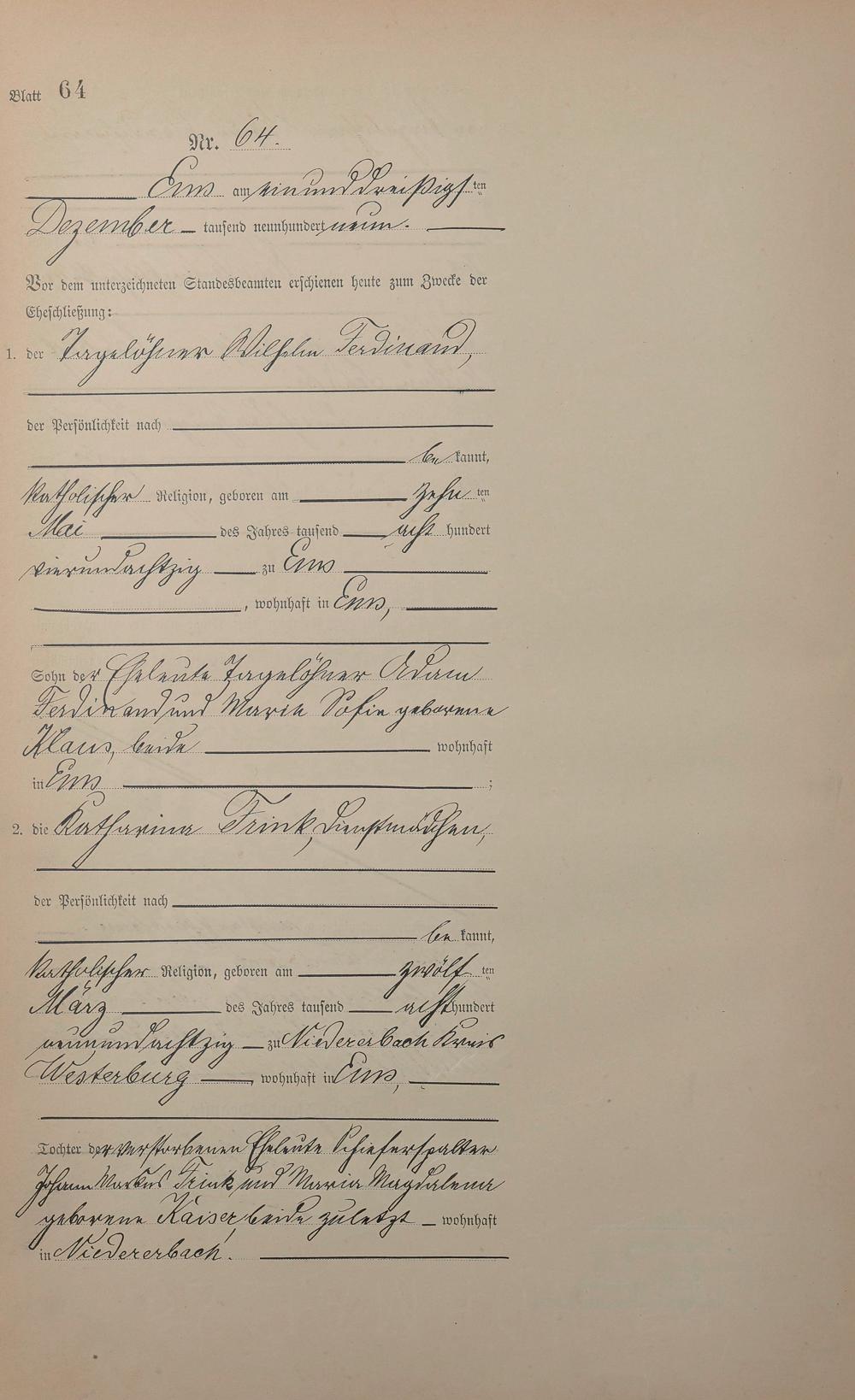 1385: Heiratsregister 1909