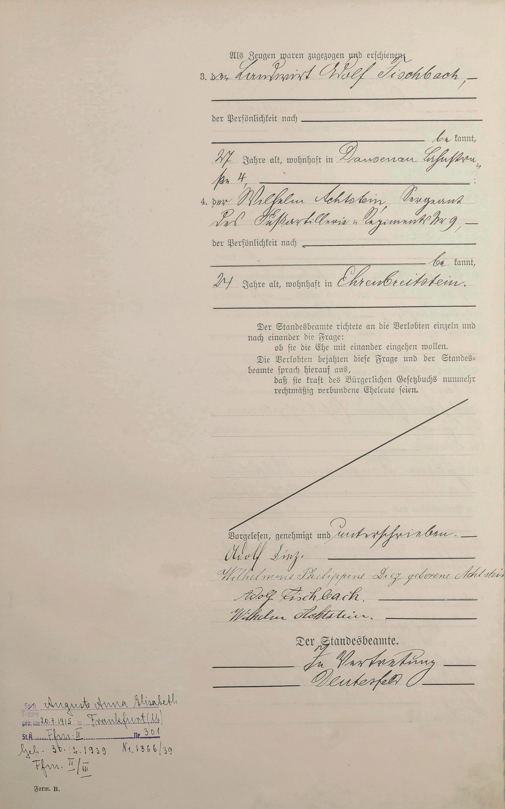 Heiratsregister 1911