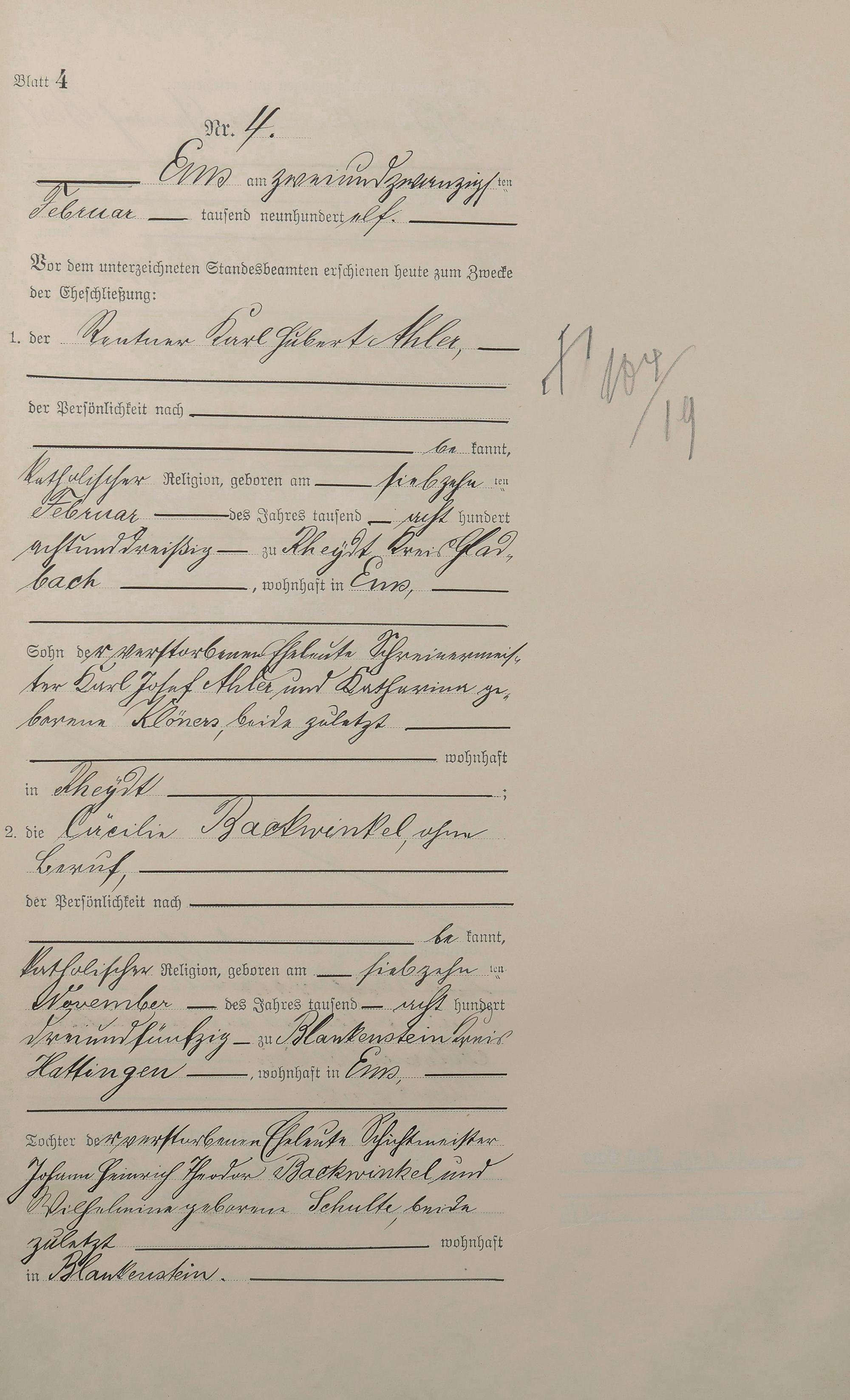 Heiratsregister 1911