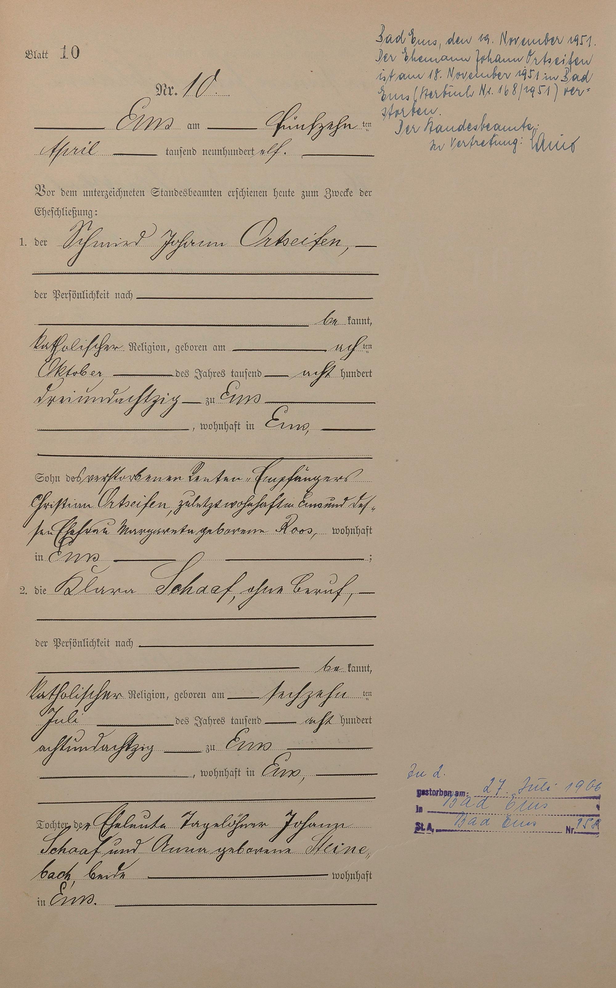 Heiratsregister 1911