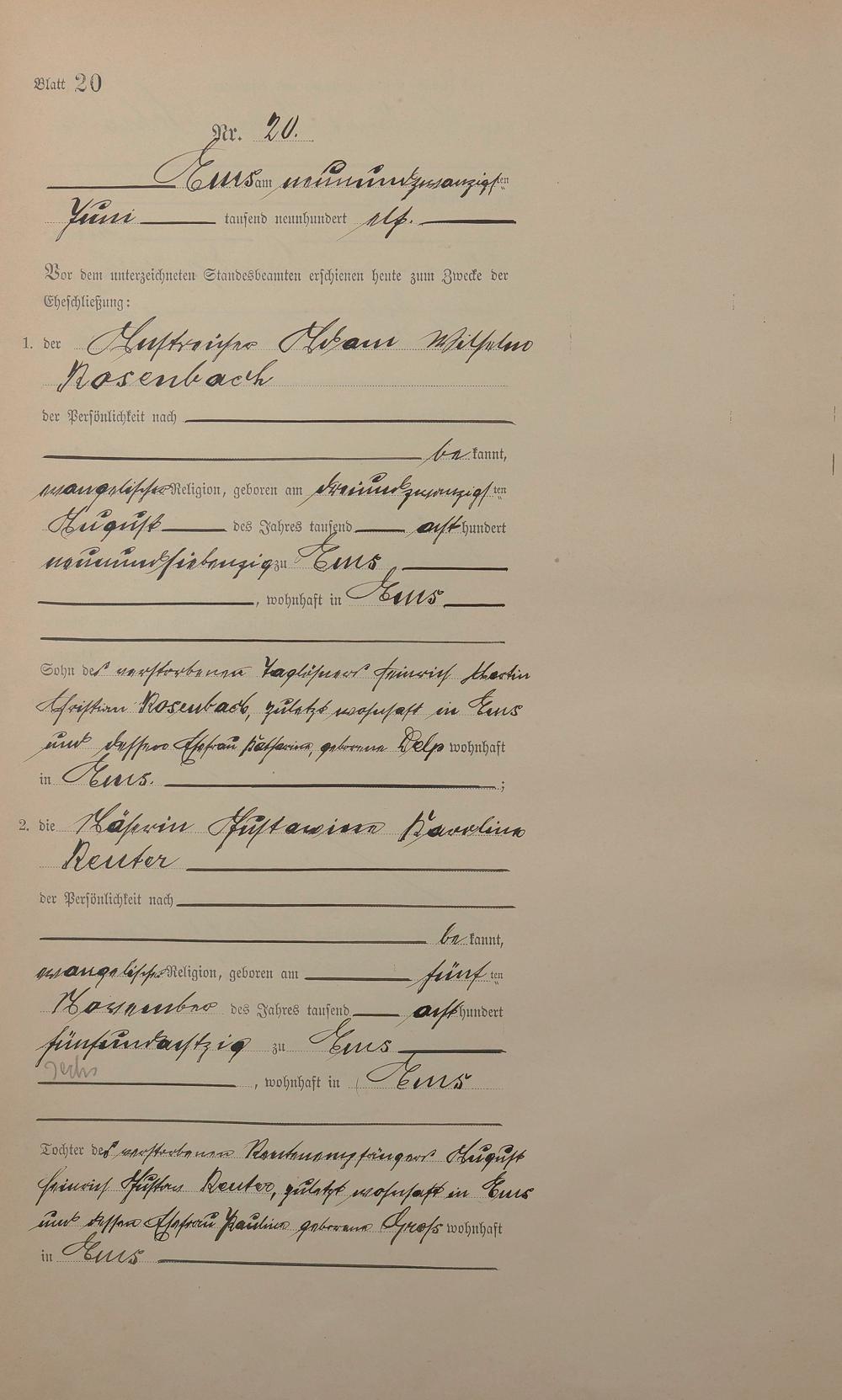 Heiratsregister 1911