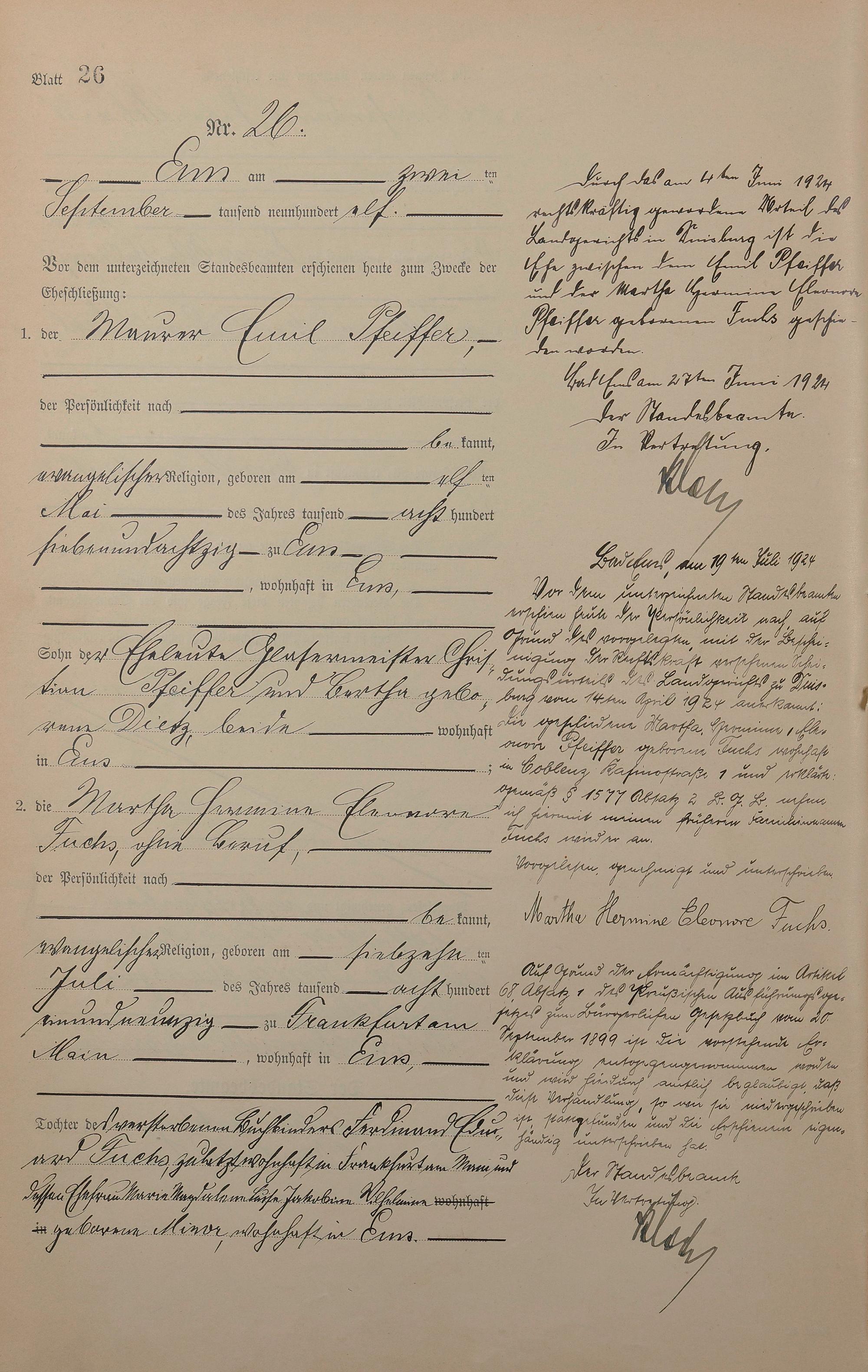 Heiratsregister 1911