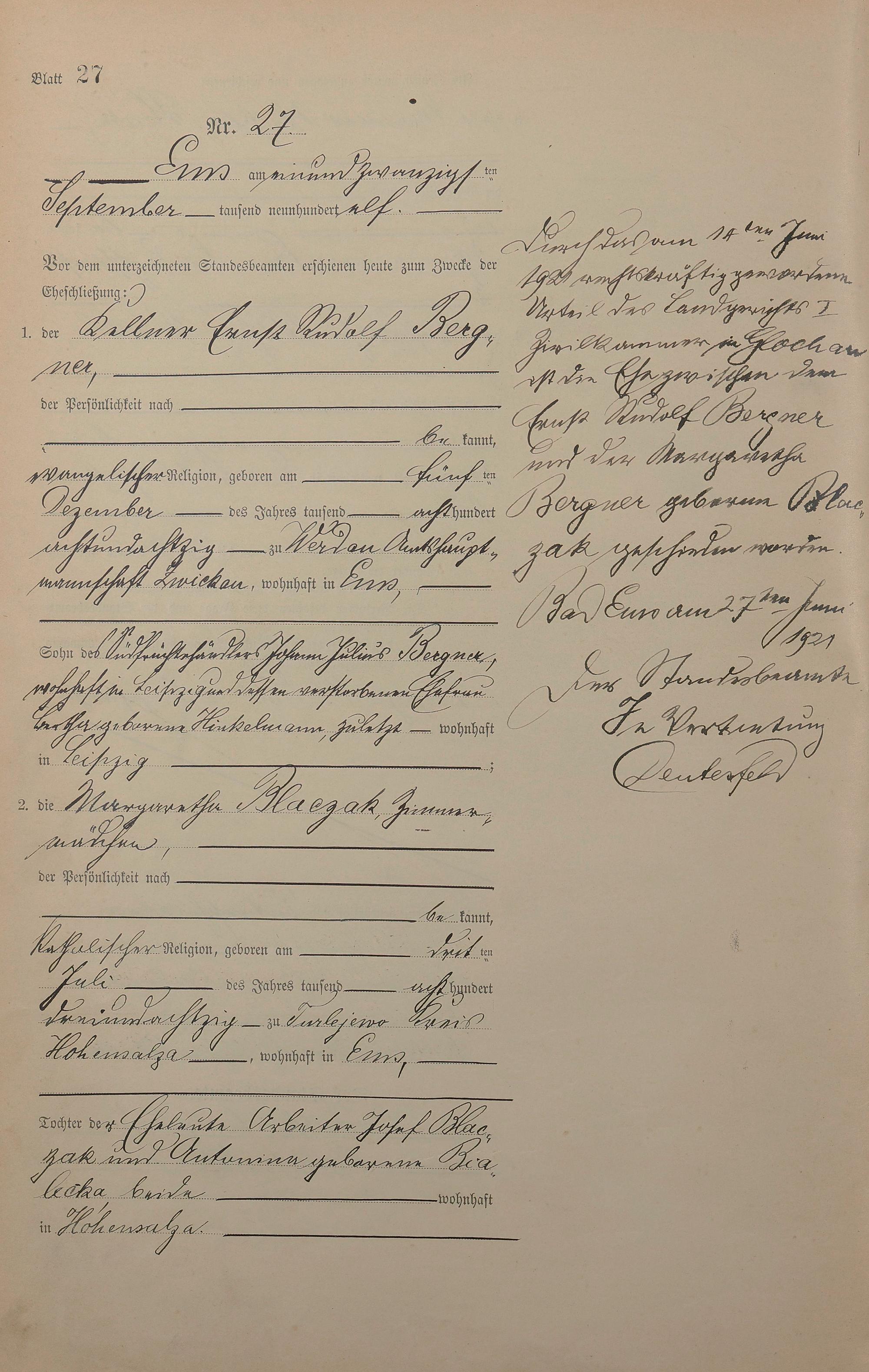 Heiratsregister 1911