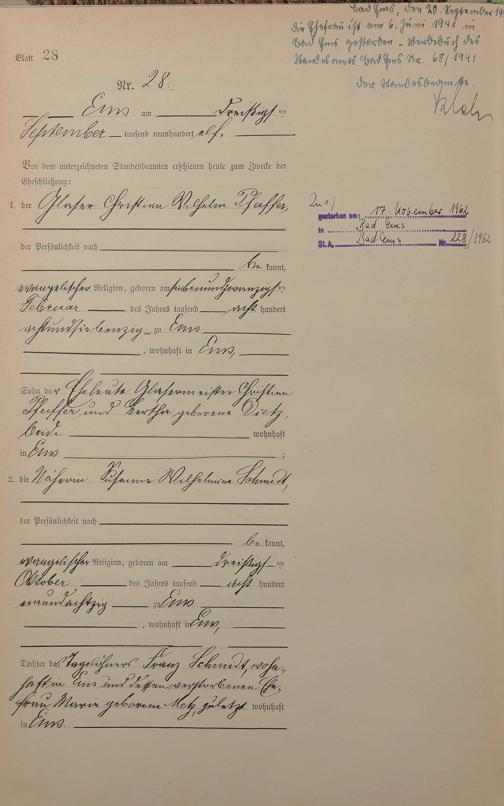Heiratsregister 1911