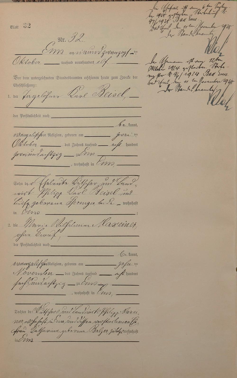 Heiratsregister 1911
