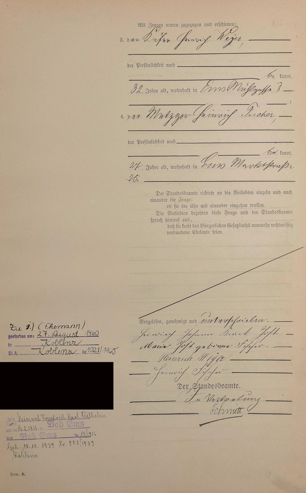 Heiratsregister 1911