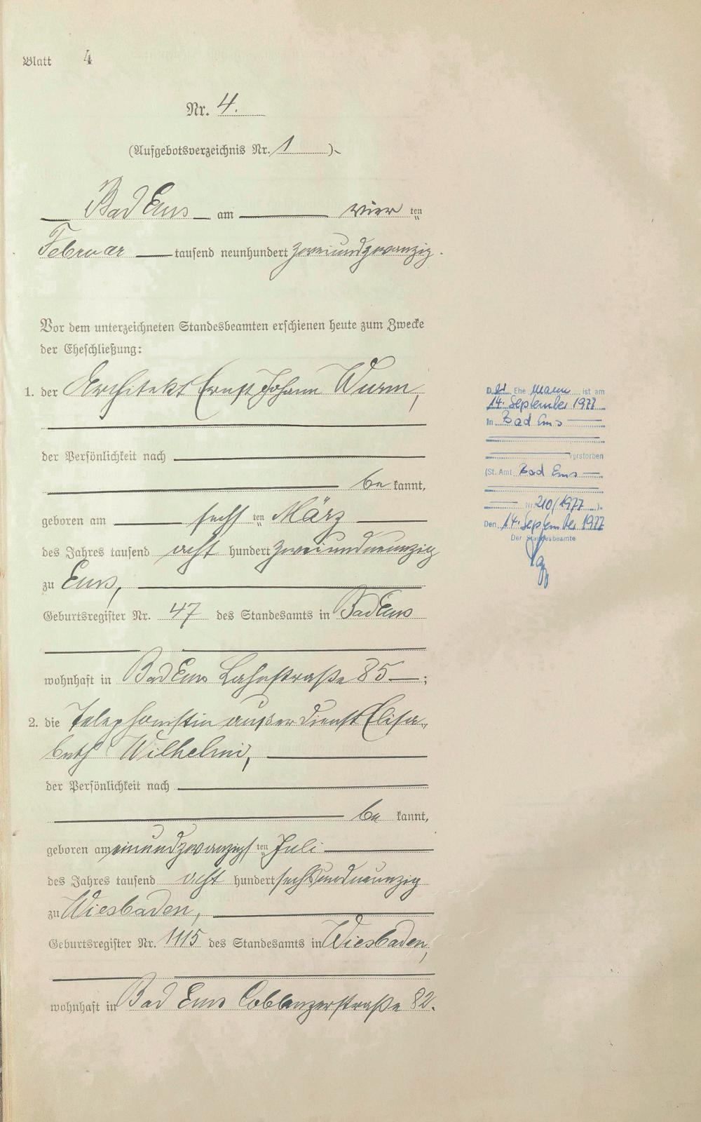 Heiratsregister 1922