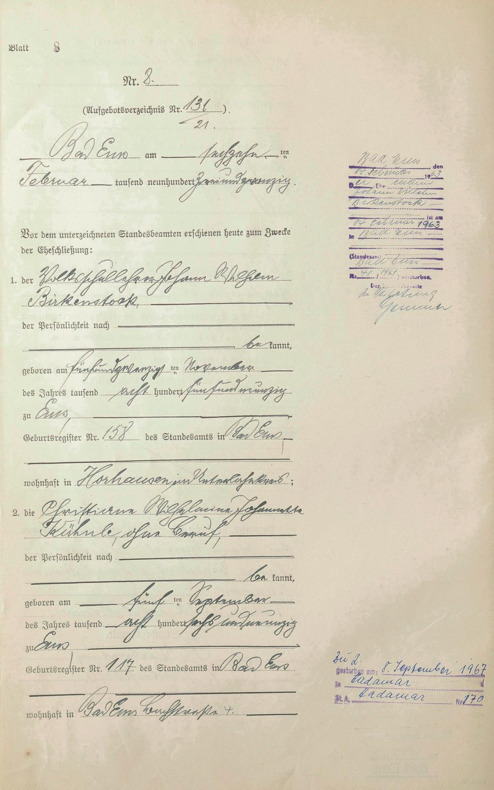 Heiratsregister 1922