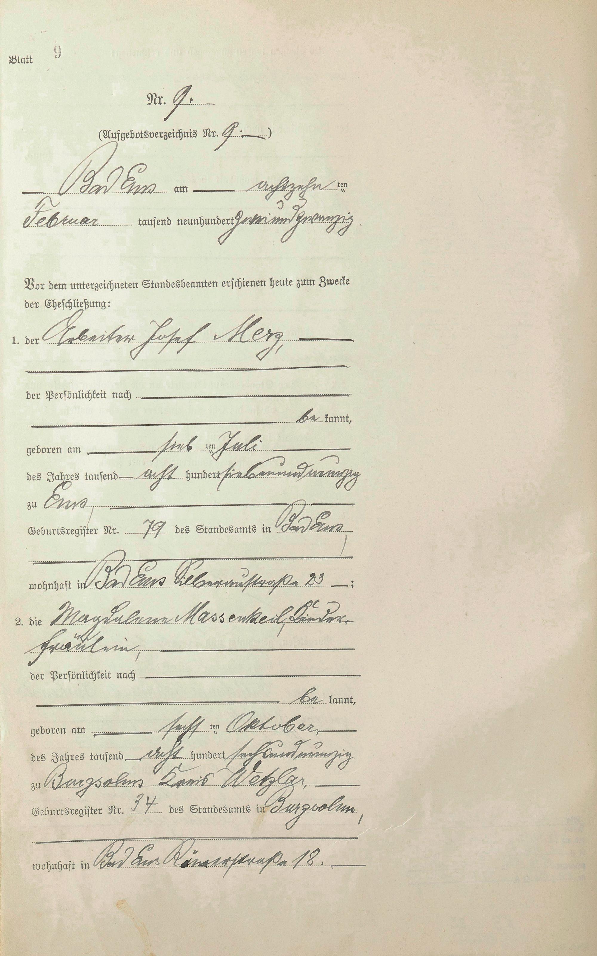 Heiratsregister 1922
