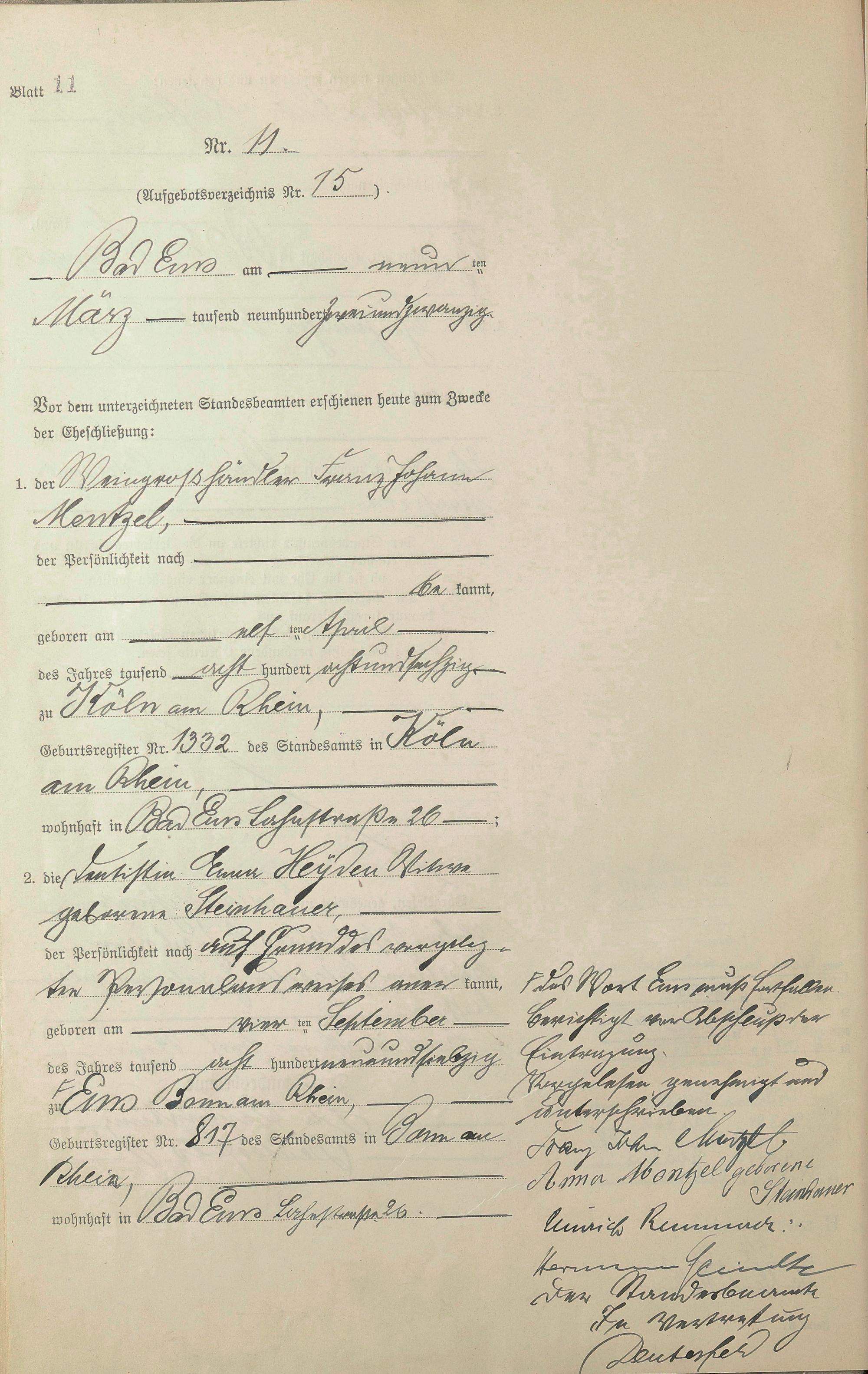 Heiratsregister 1922