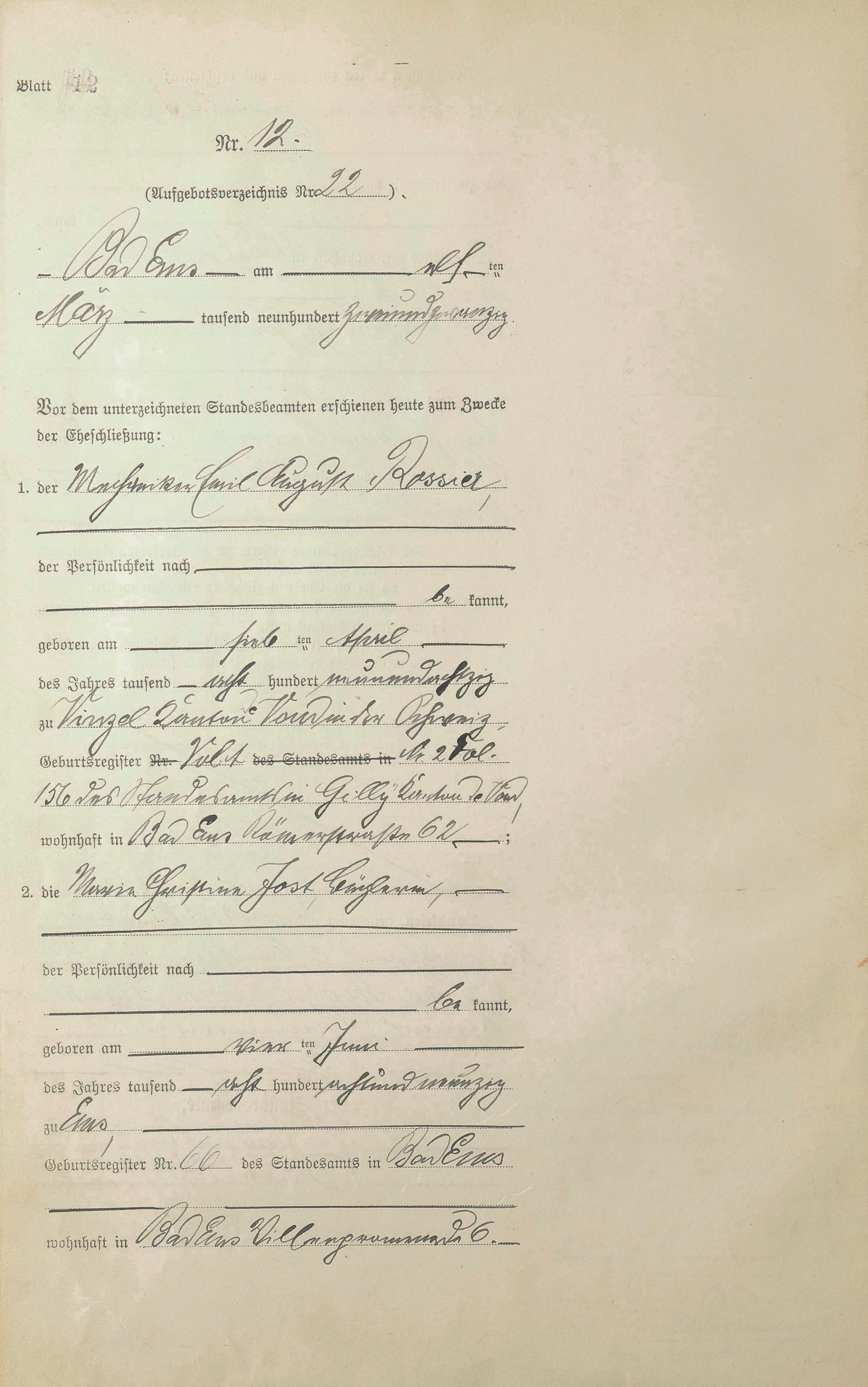 Heiratsregister 1922