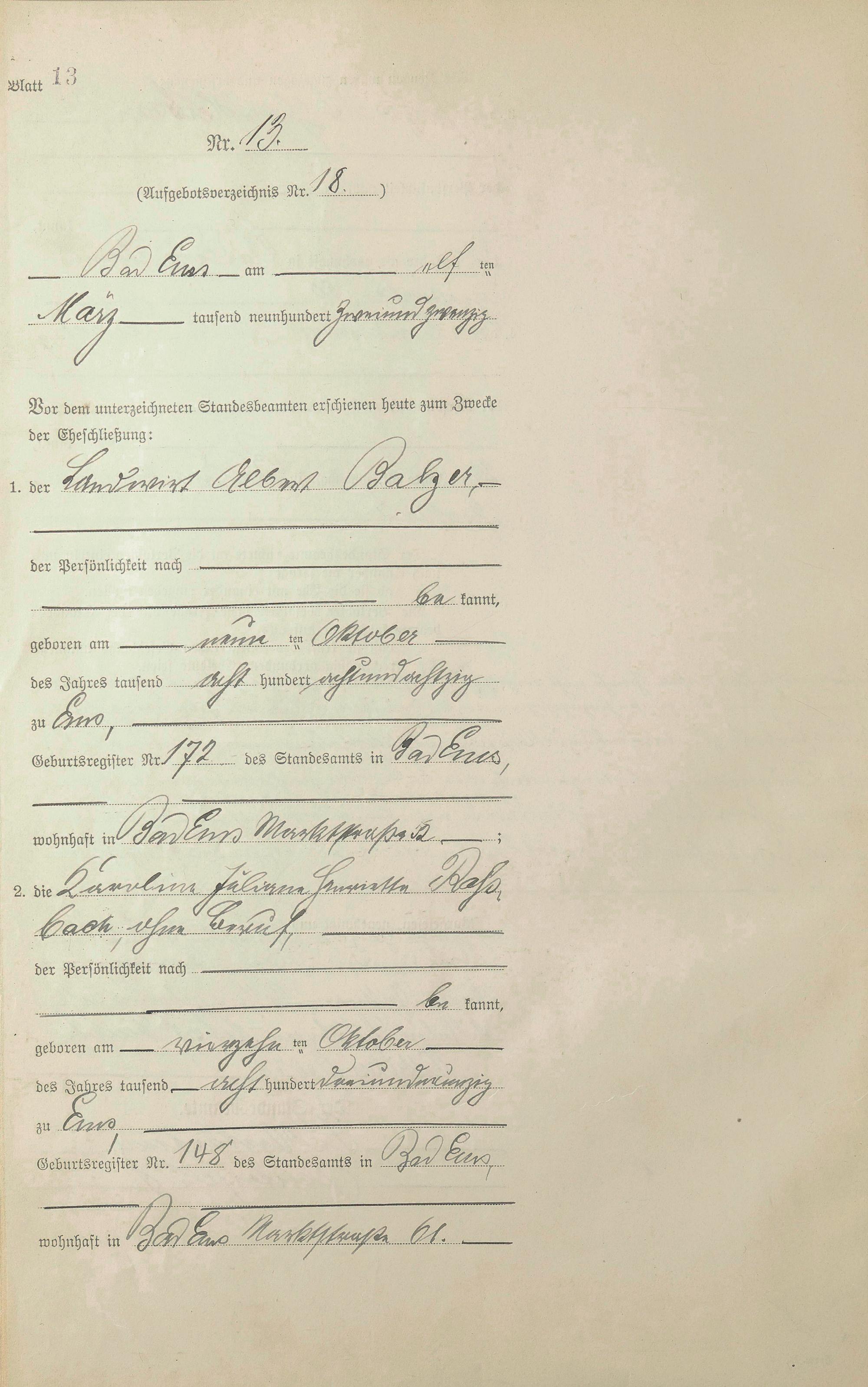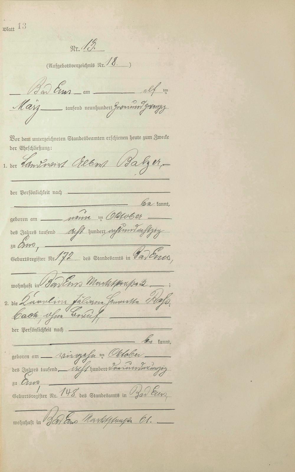 Heiratsregister 1922