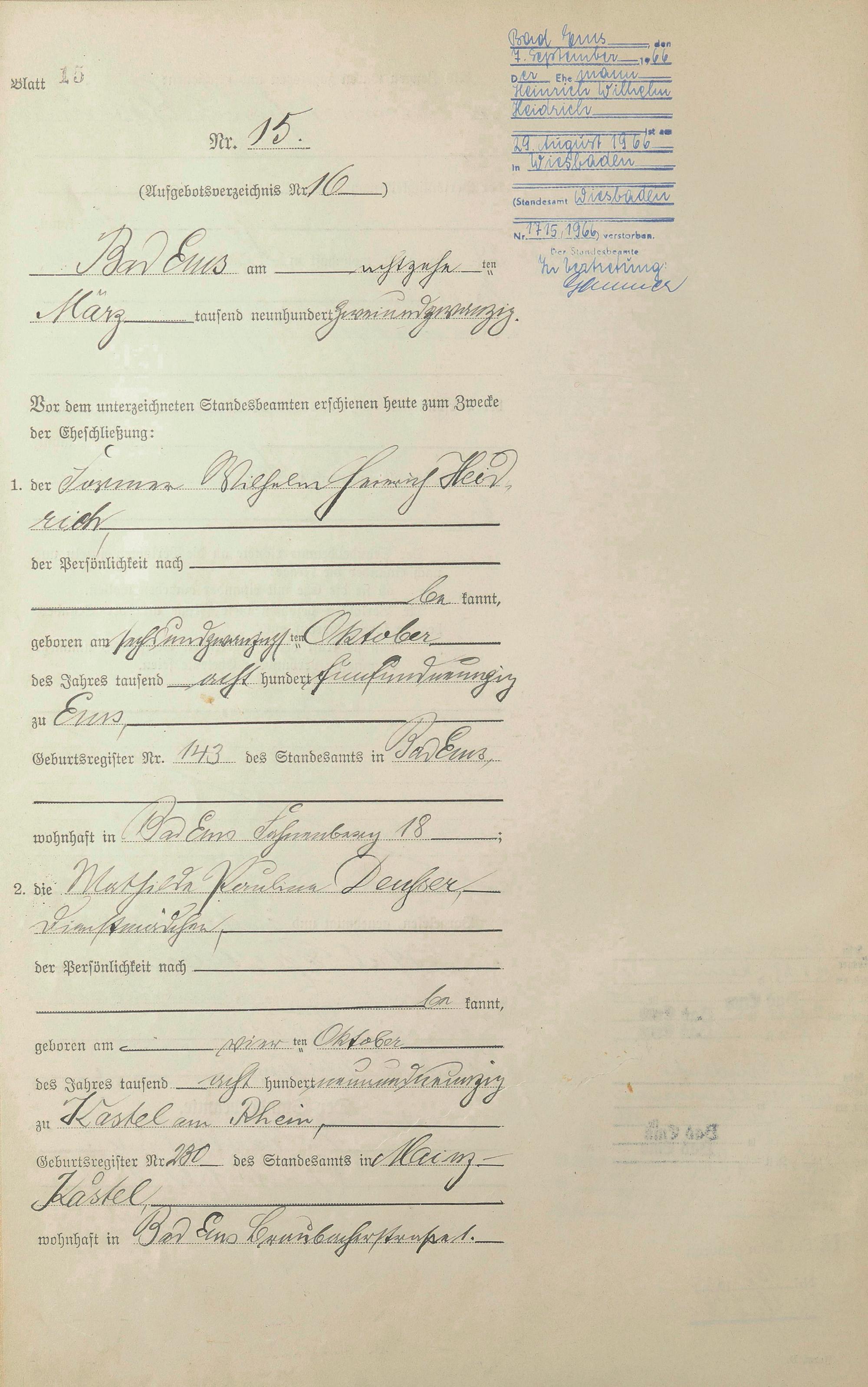 Heiratsregister 1922