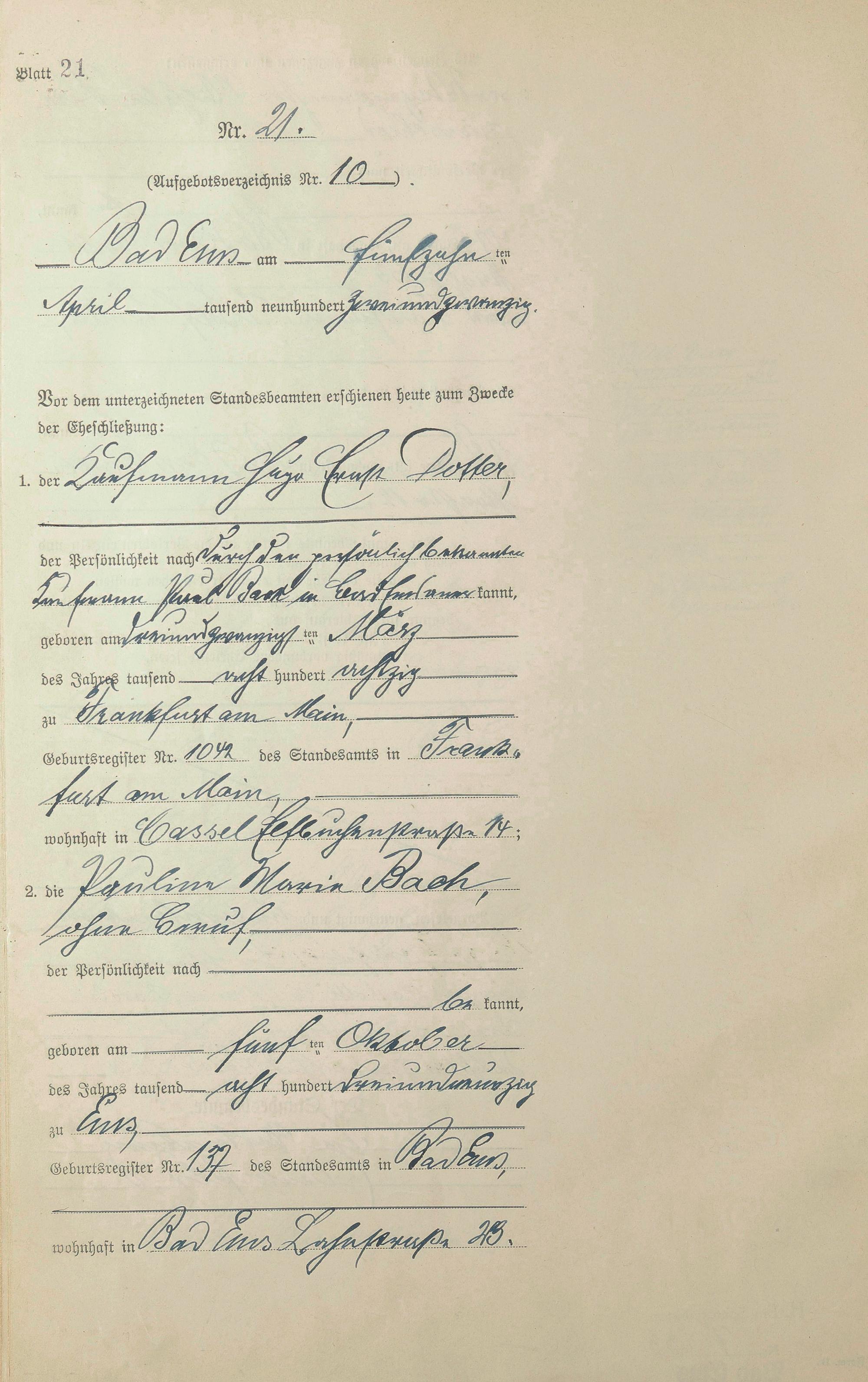 Heiratsregister 1922