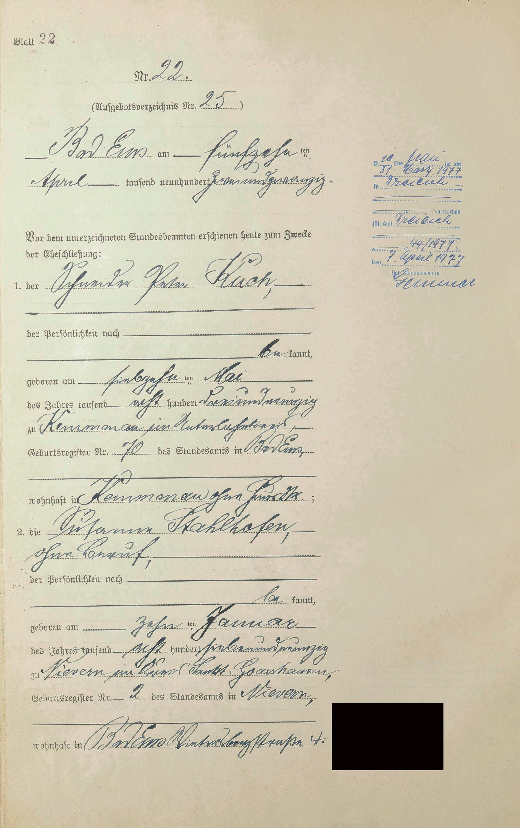 Heiratsregister 1922