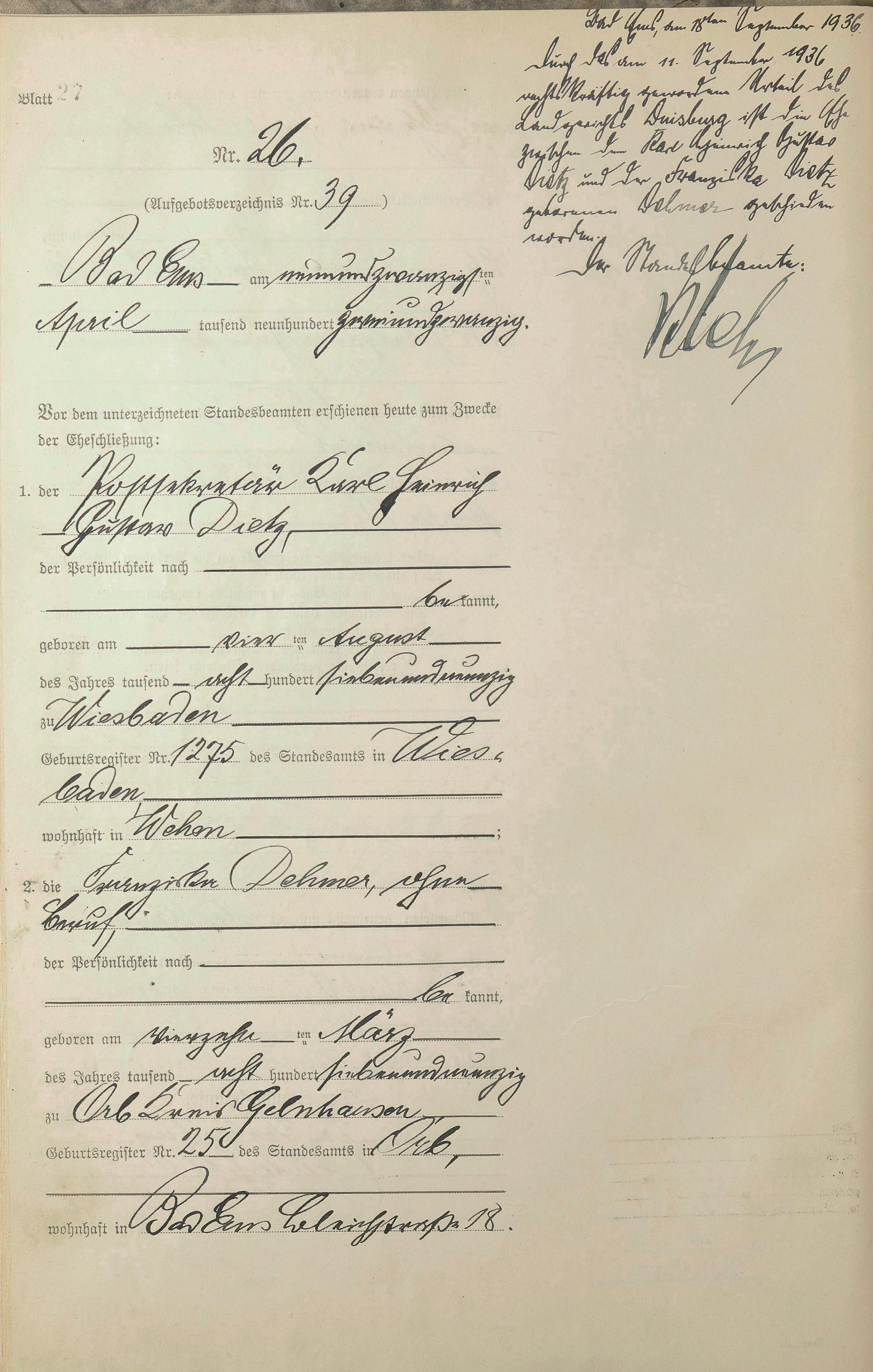 Heiratsregister 1922