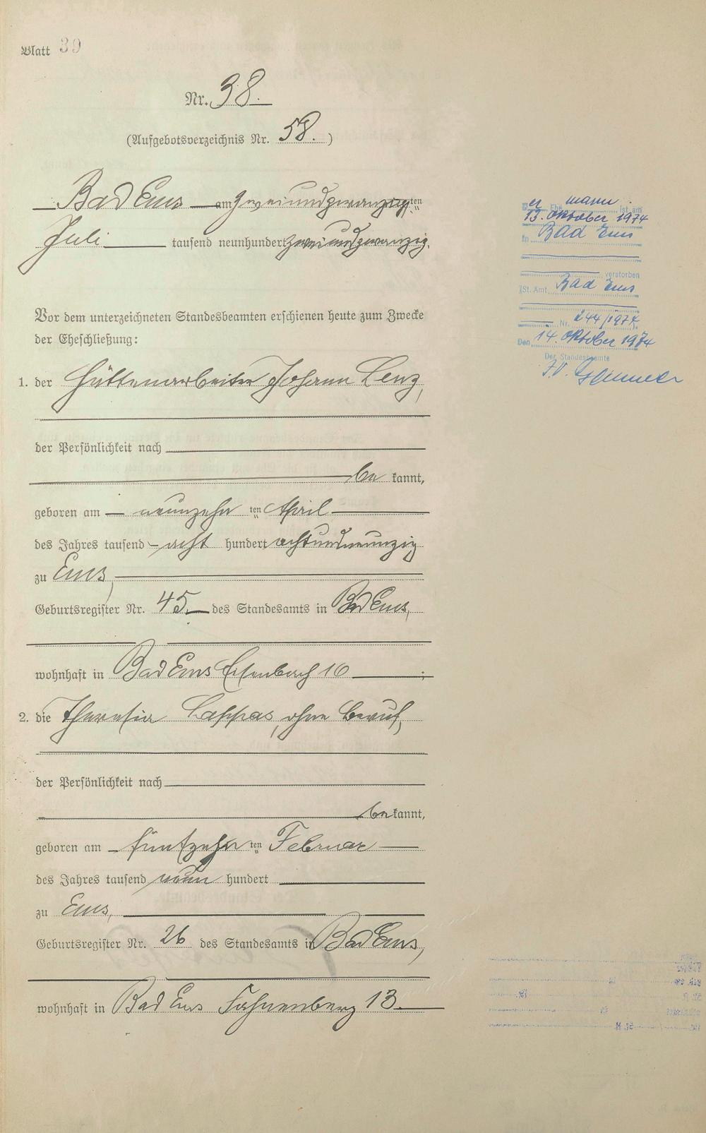 1398: Heiratsregister 1922