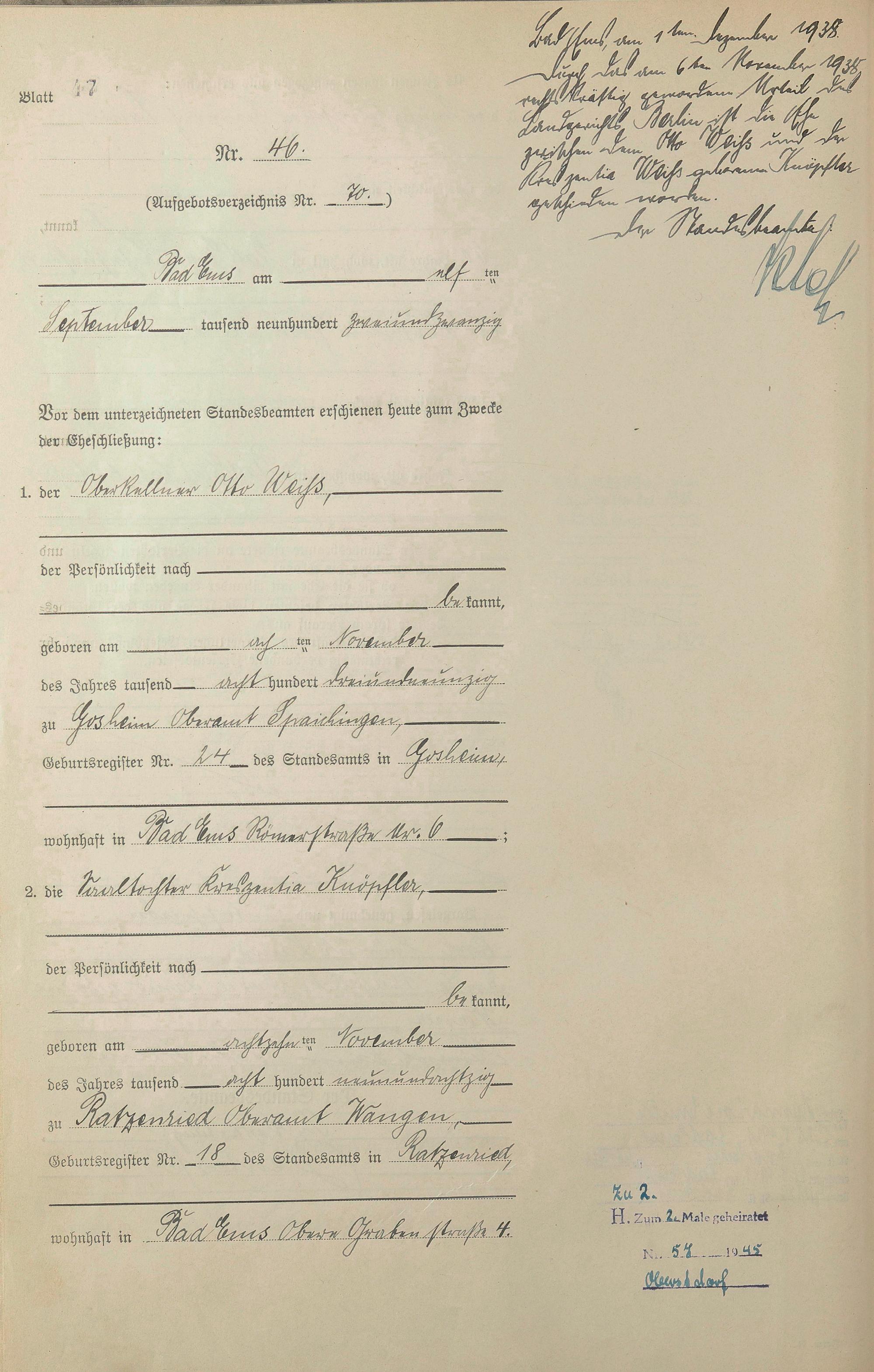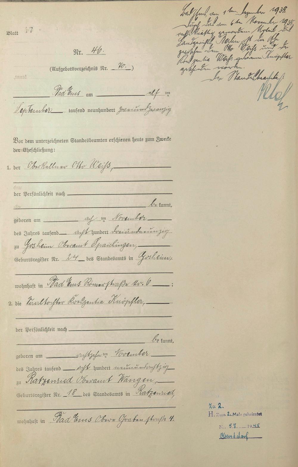 Heiratsregister 1922