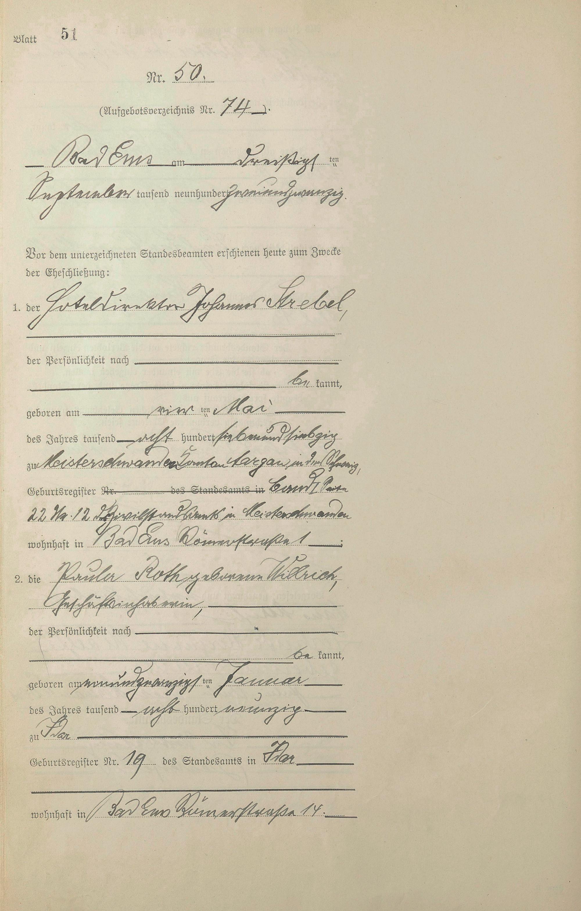 Heiratsregister 1922