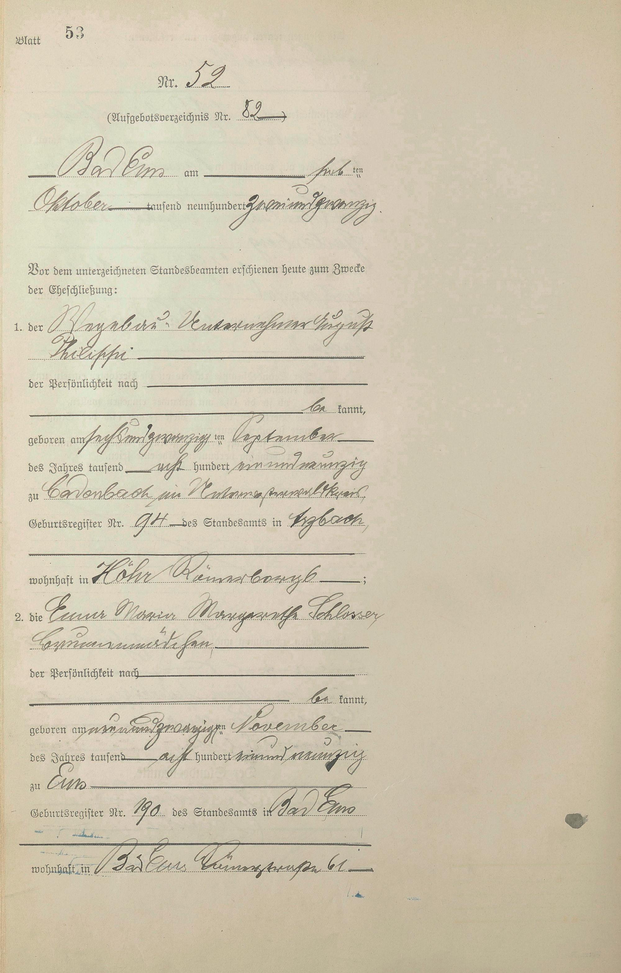 Heiratsregister 1922