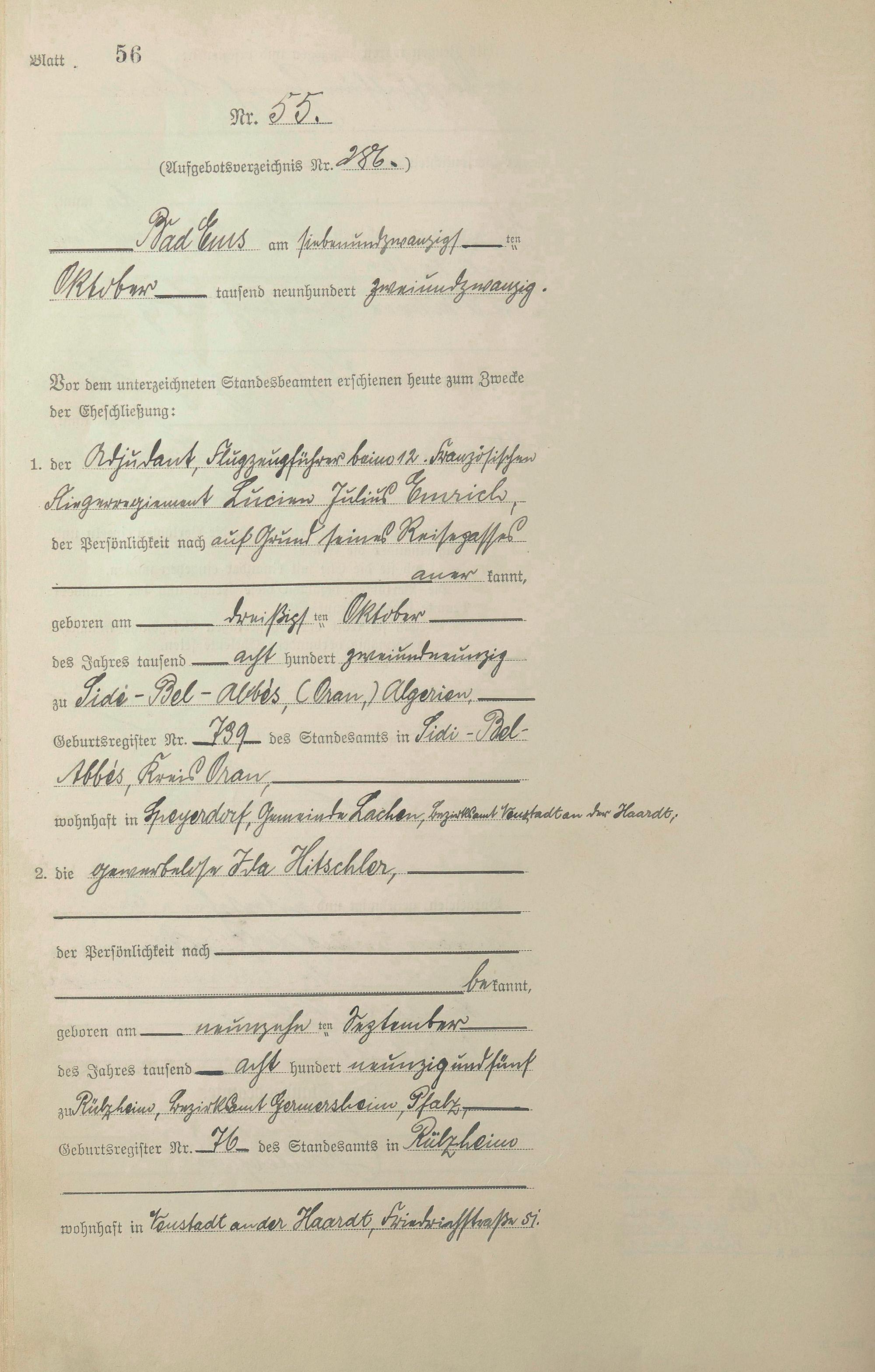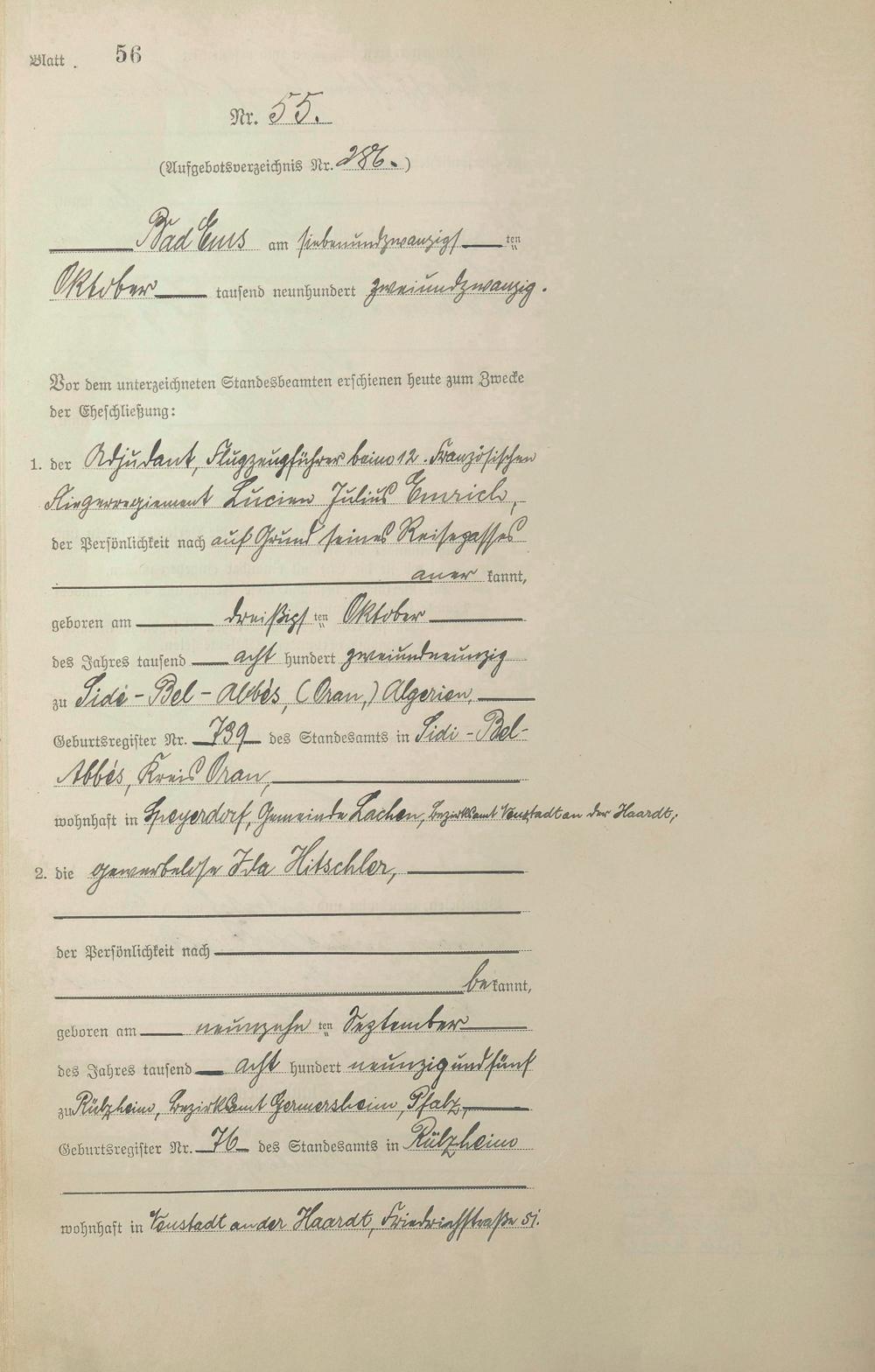 Heiratsregister 1922