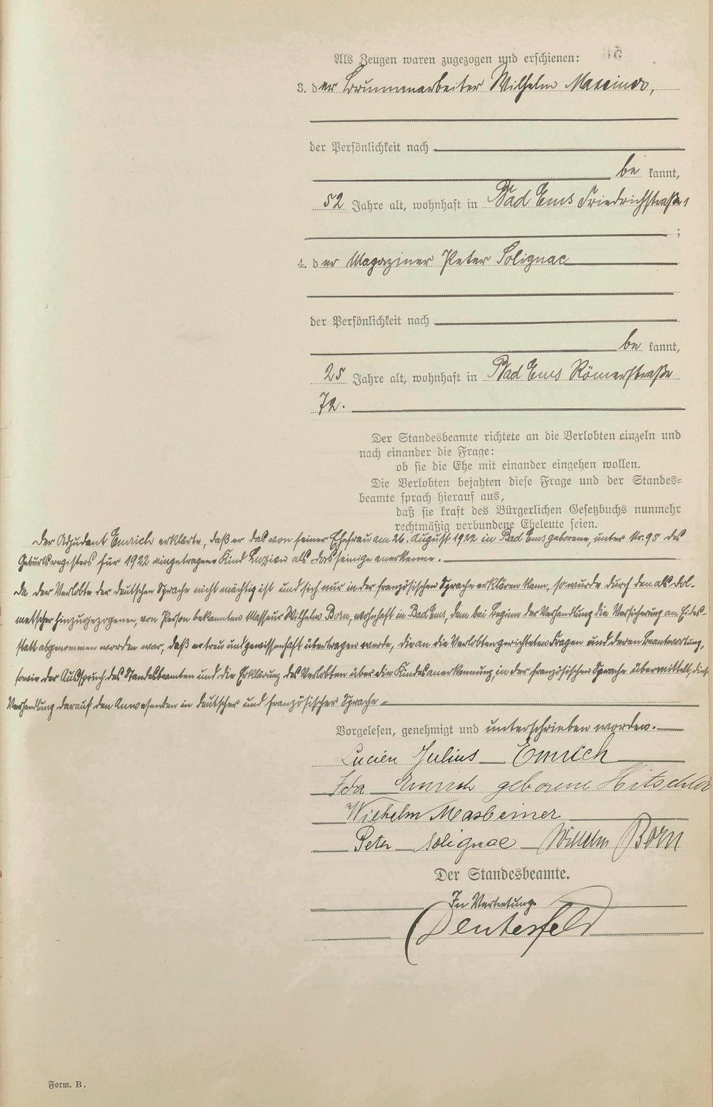 Heiratsregister 1922