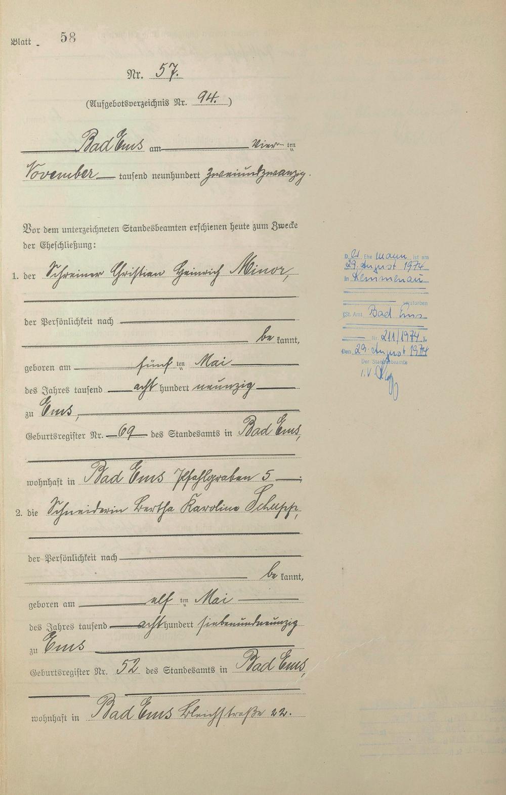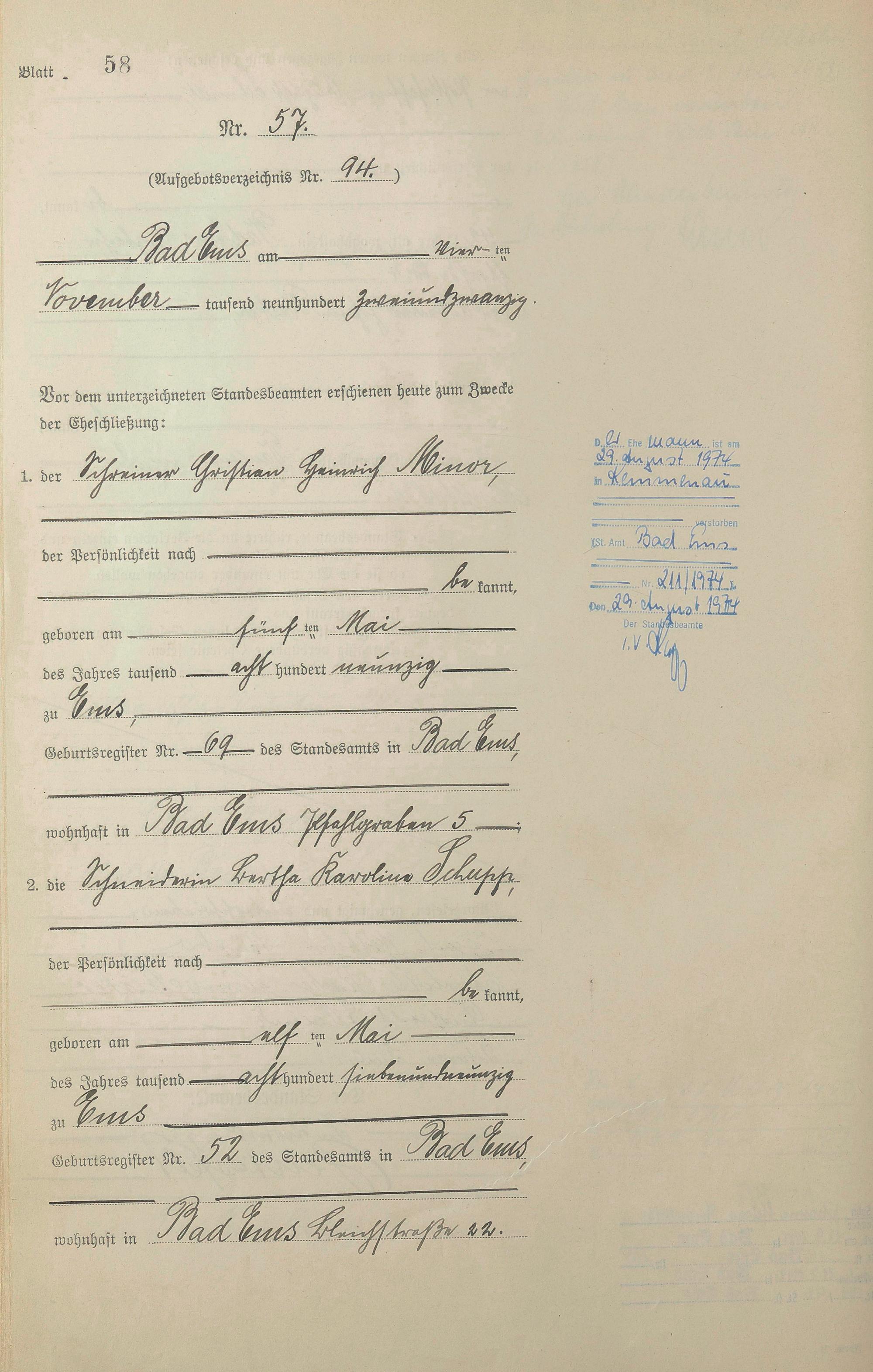 Heiratsregister 1922