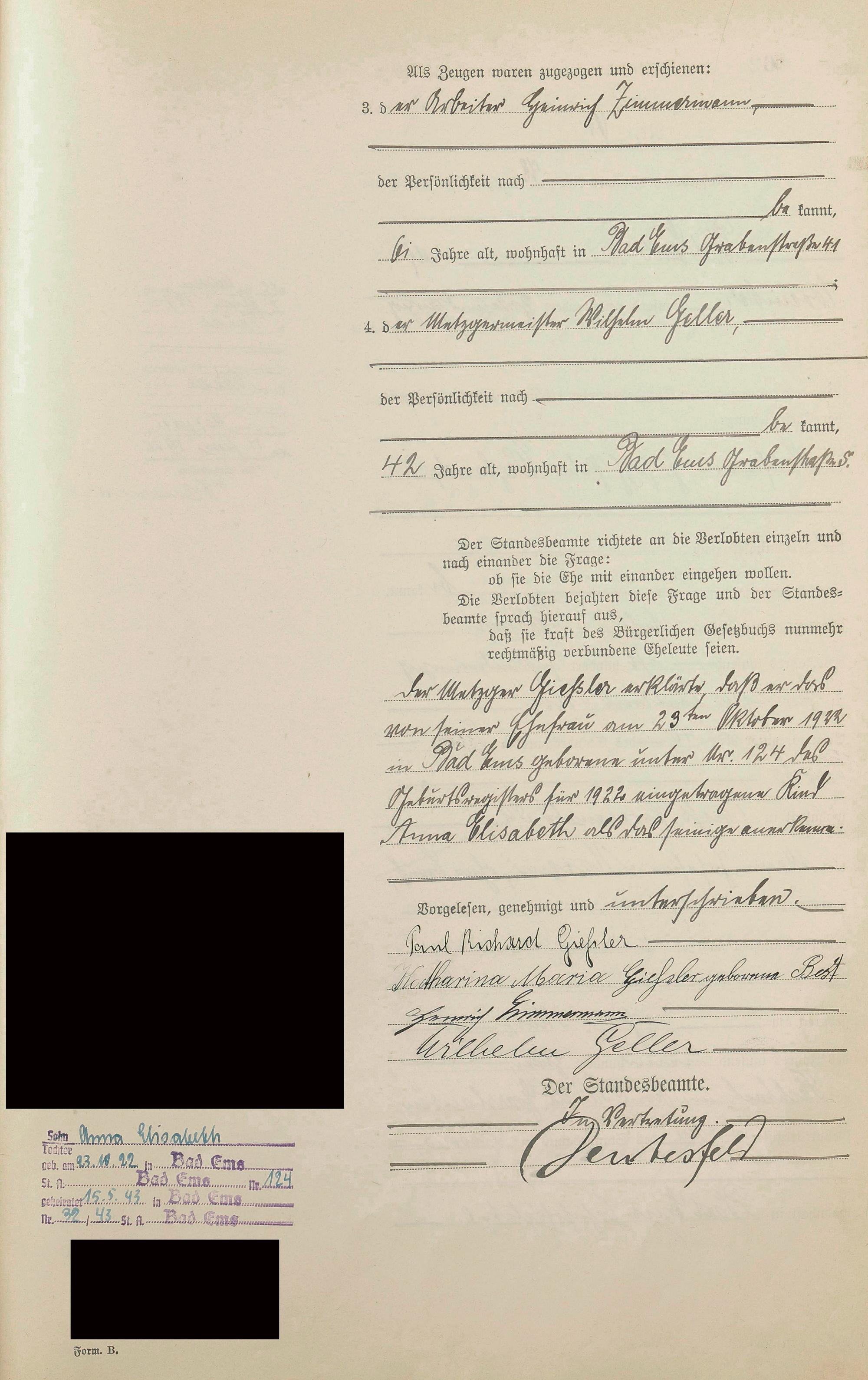 Heiratsregister 1922