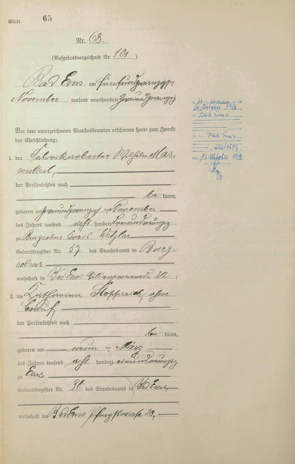 Heiratsregister 1922