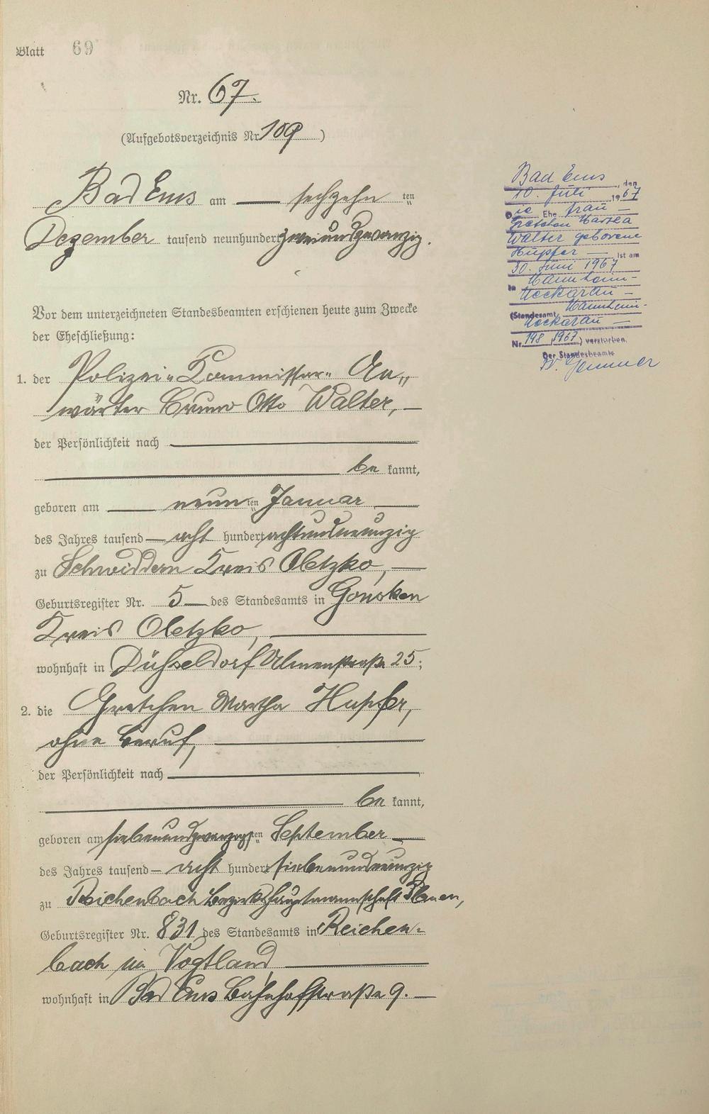 Heiratsregister 1922