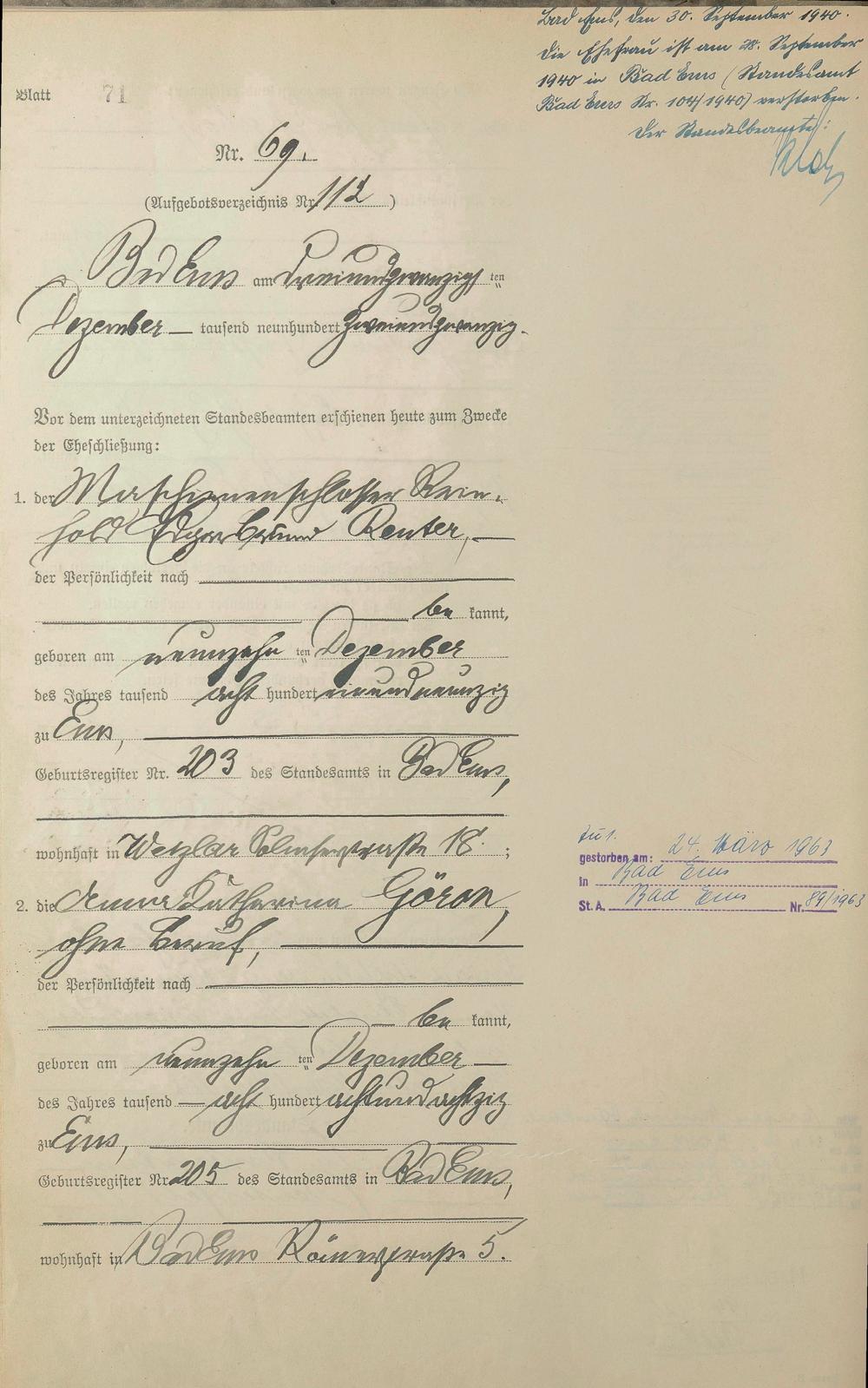 Heiratsregister 1922