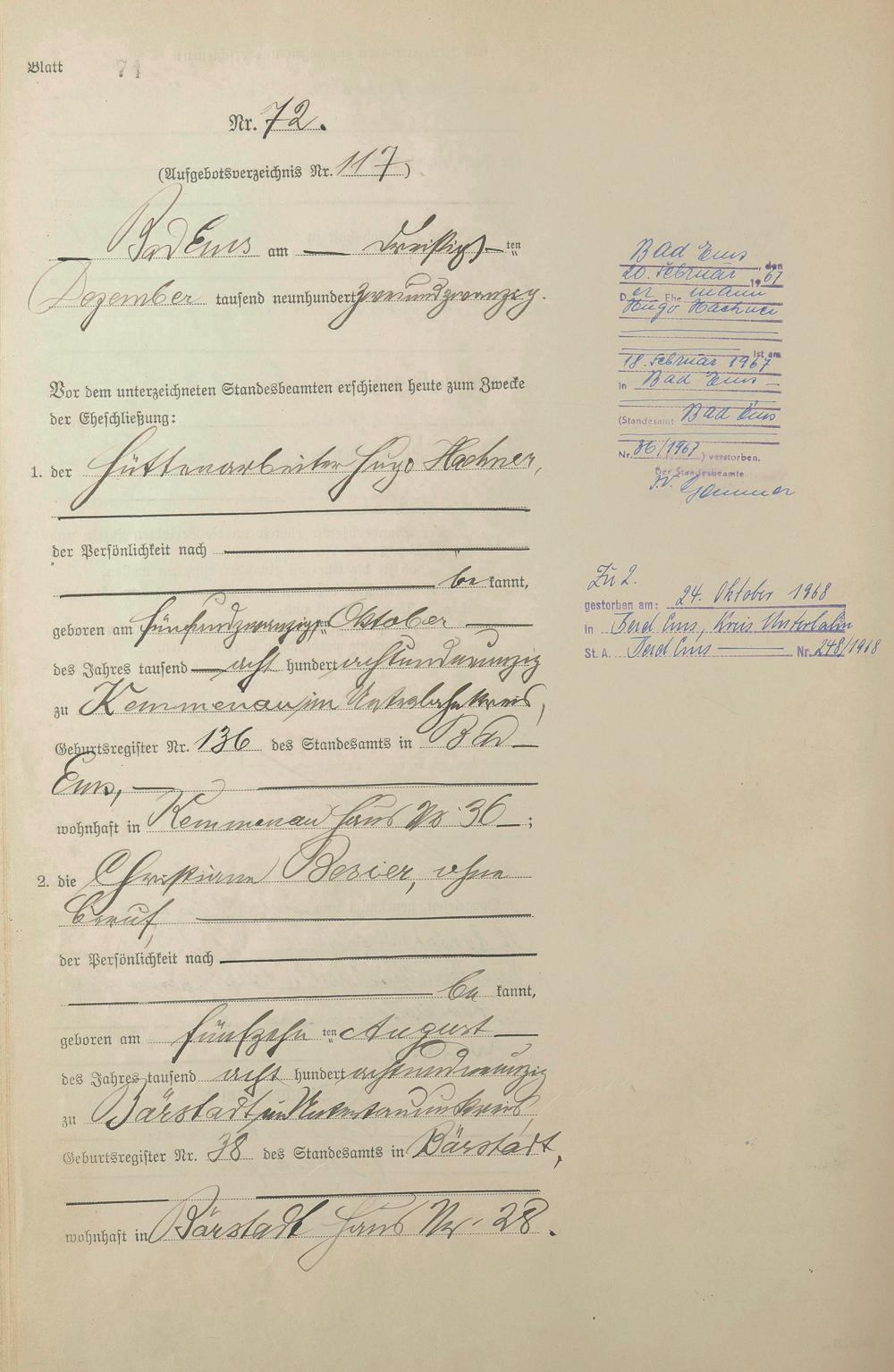 Heiratsregister 1922
