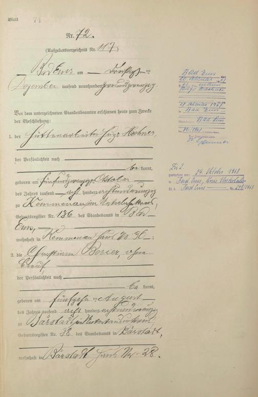 1398: Heiratsregister 1922