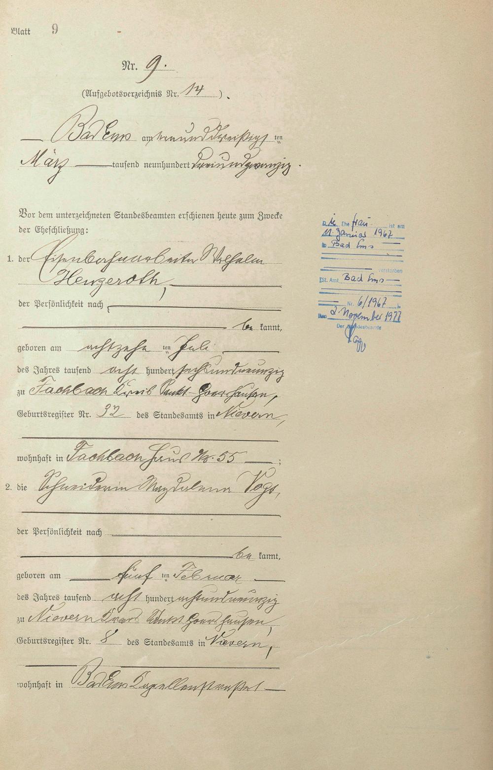 Heiratsregister 1923